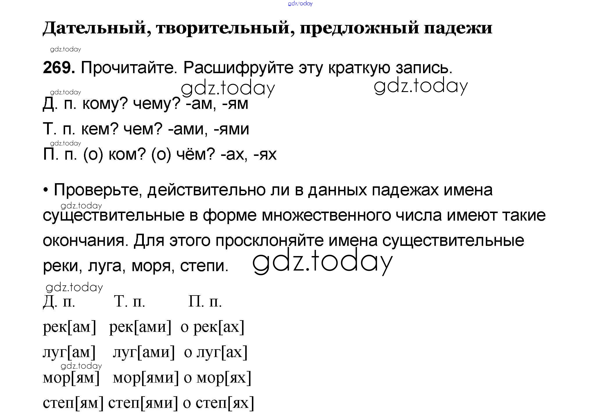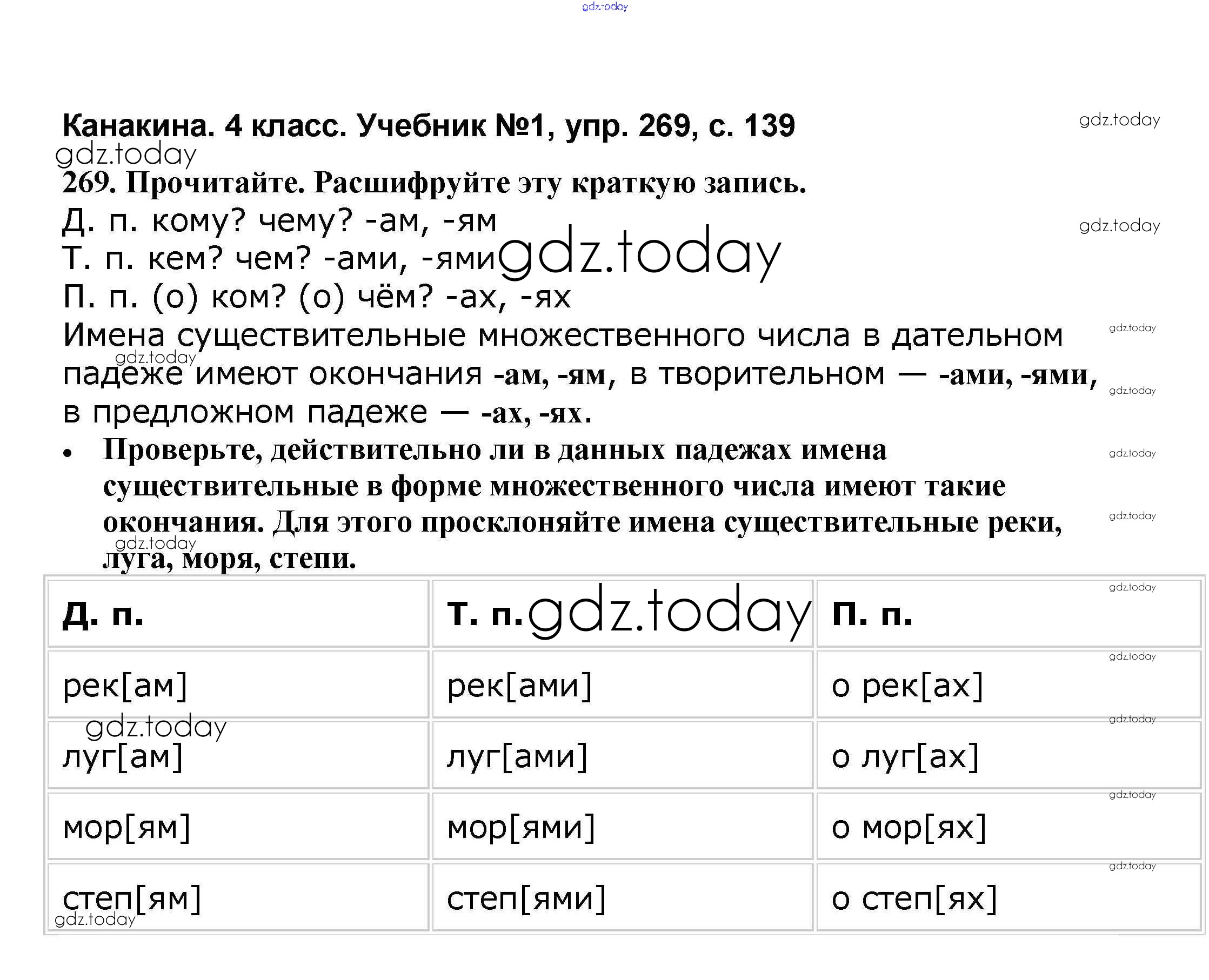 На страницах сайта gdz.today вы найдете учебный и вспомогательный материал, направленный на улучшения знаний школьной программы. ГДЗ - онлайн мир знаний Решение к части 1 269 Учебнику по Русскому языку для 4 класса Канакина, Горецкий Просвещение Школа России 2015
