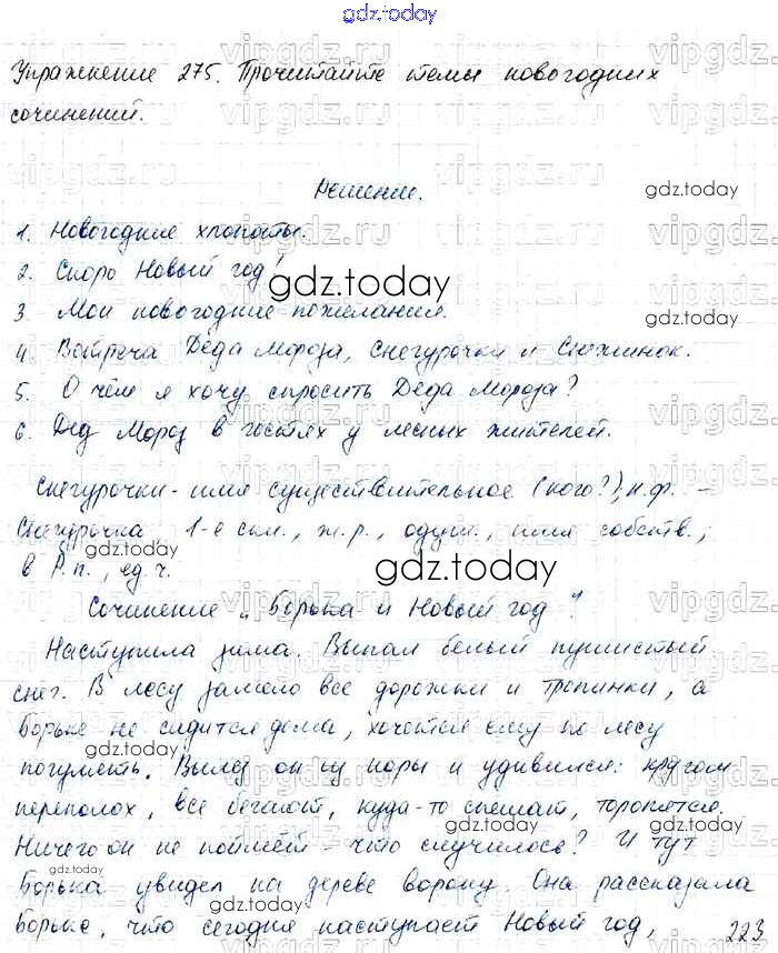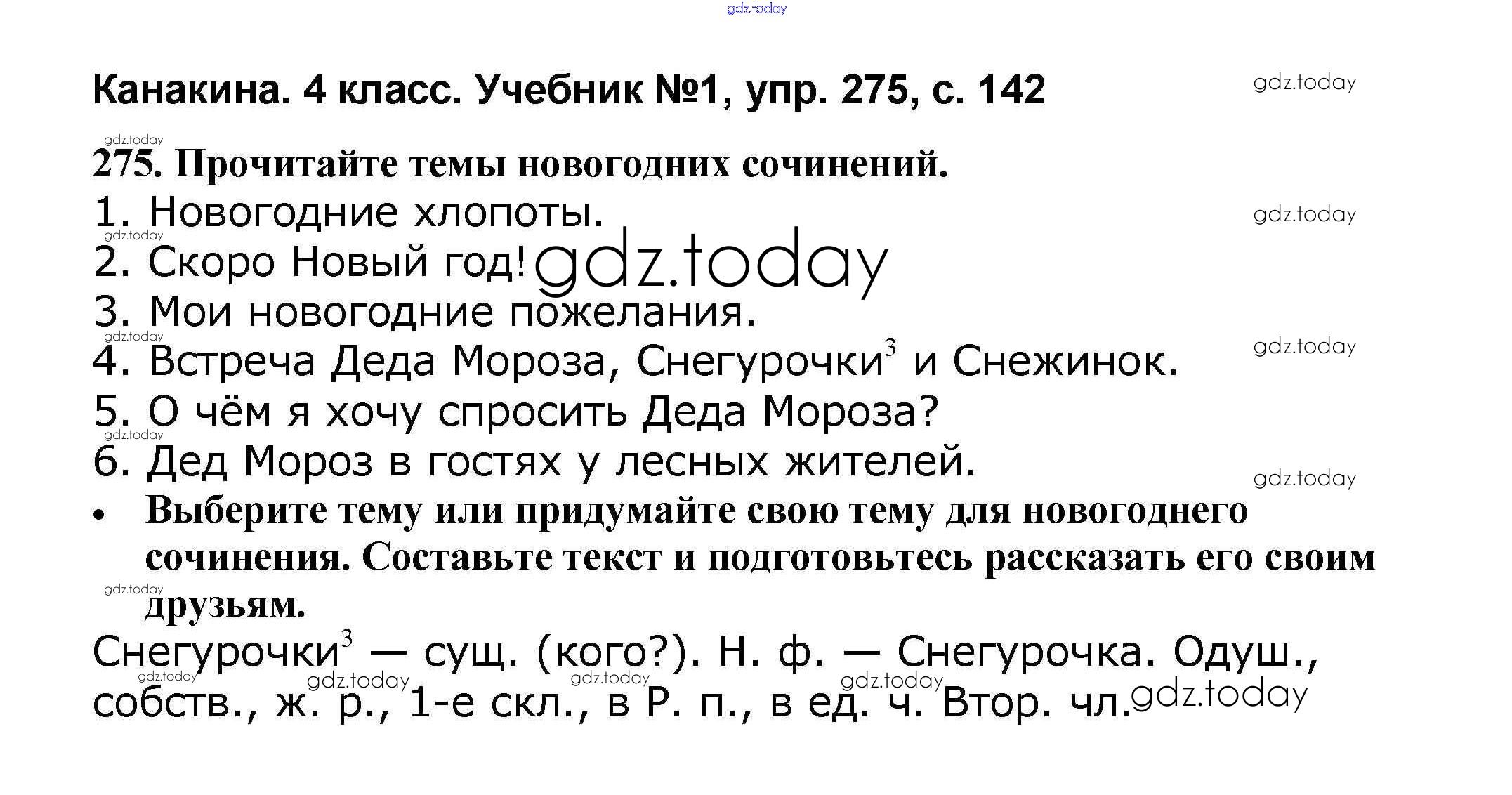 На страницах сайта gdz.today вы найдете учебный и вспомогательный материал, направленный на улучшения знаний школьной программы. ГДЗ - онлайн мир знаний Решение к части 1 275 Учебнику по Русскому языку для 4 класса Канакина, Горецкий Просвещение Школа России 2015