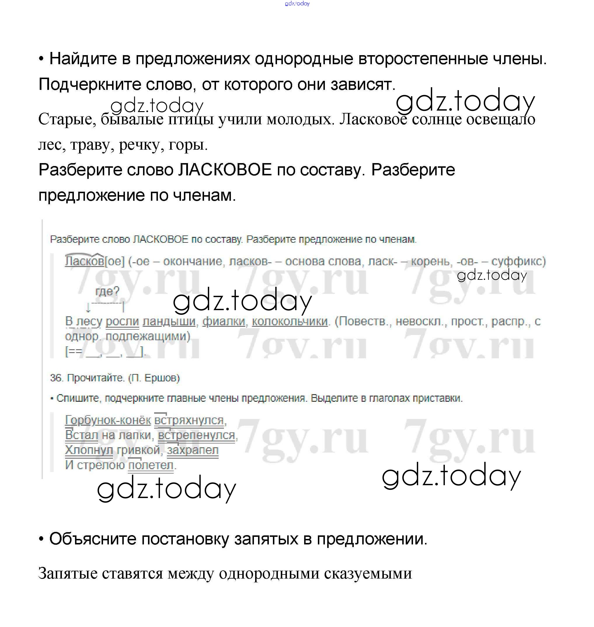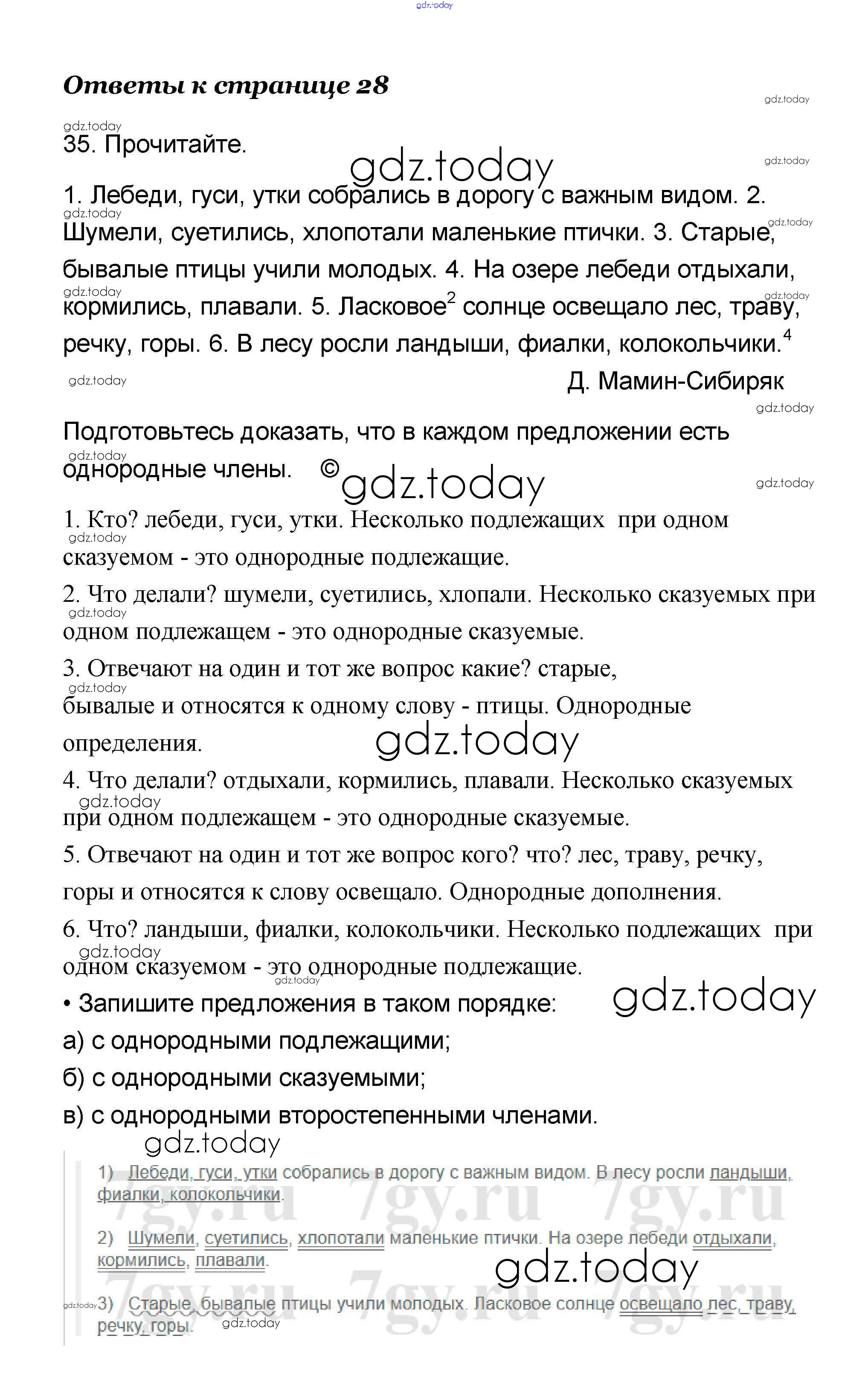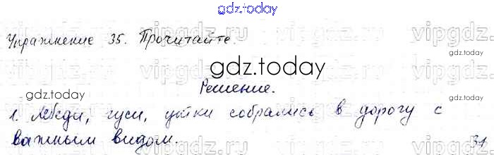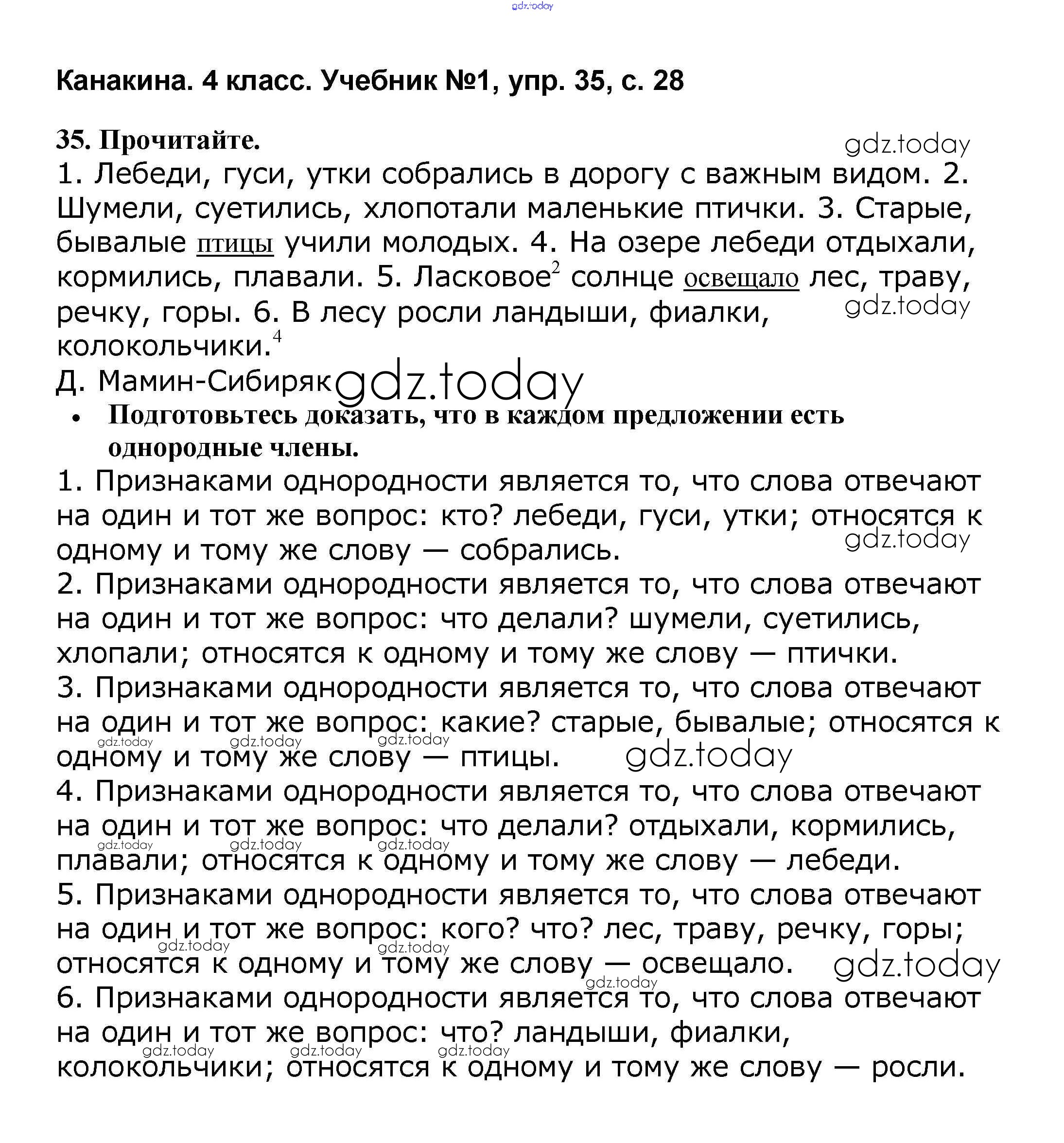 На страницах сайта gdz.today вы найдете учебный и вспомогательный материал, направленный на улучшения знаний школьной программы. ГДЗ - онлайн мир знаний Решение к части 1 35 Учебнику по Русскому языку для 4 класса Канакина, Горецкий Просвещение Школа России 2015