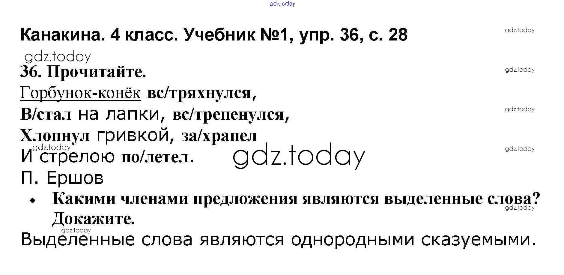 На страницах сайта gdz.today вы найдете учебный и вспомогательный материал, направленный на улучшения знаний школьной программы. ГДЗ - онлайн мир знаний Решение к части 1 36 Учебнику по Русскому языку для 4 класса Канакина, Горецкий Просвещение Школа России 2015