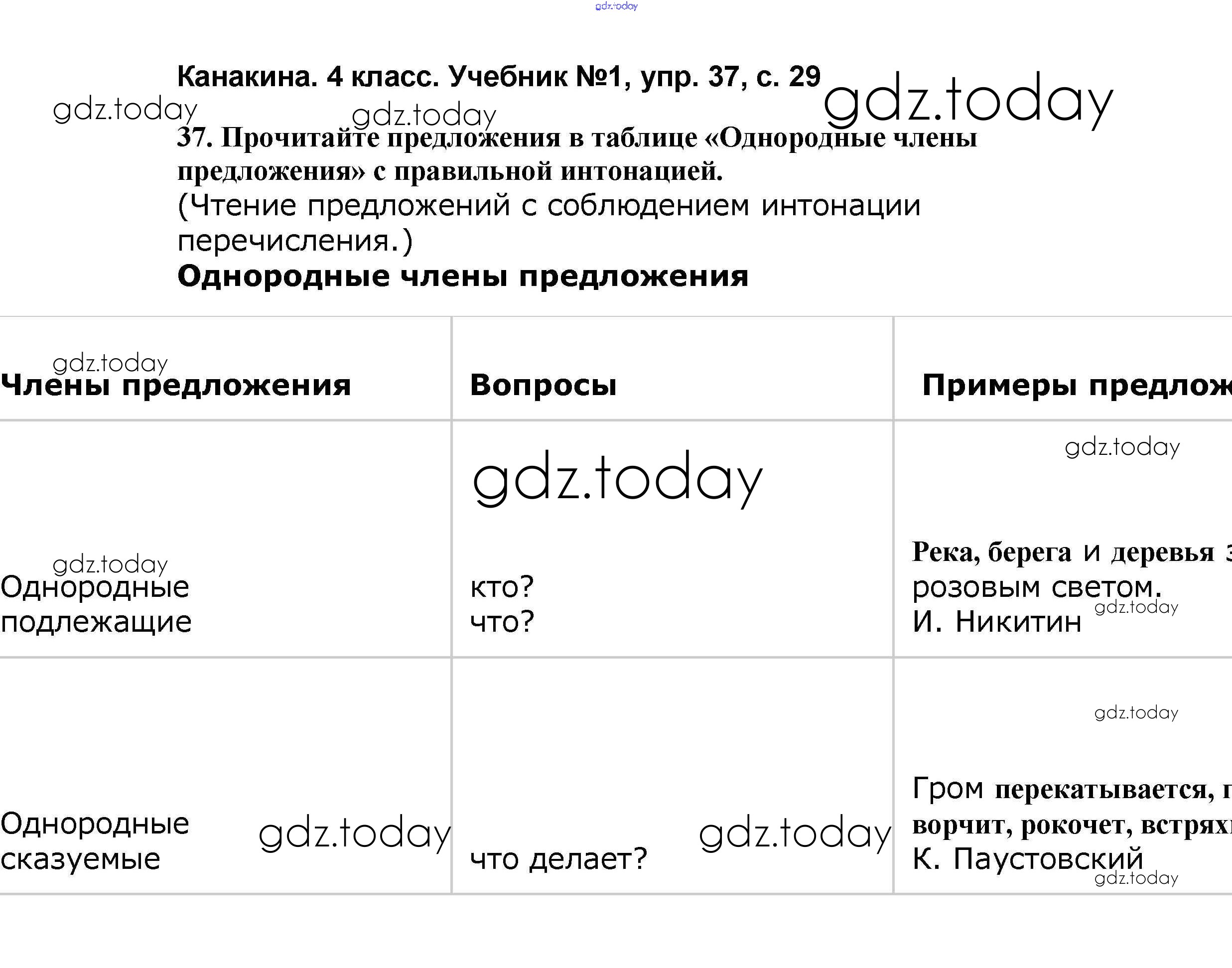 На страницах сайта gdz.today вы найдете учебный и вспомогательный материал, направленный на улучшения знаний школьной программы. ГДЗ - онлайн мир знаний Решение к части 1 37 Учебнику по Русскому языку для 4 класса Канакина, Горецкий Просвещение Школа России 2015