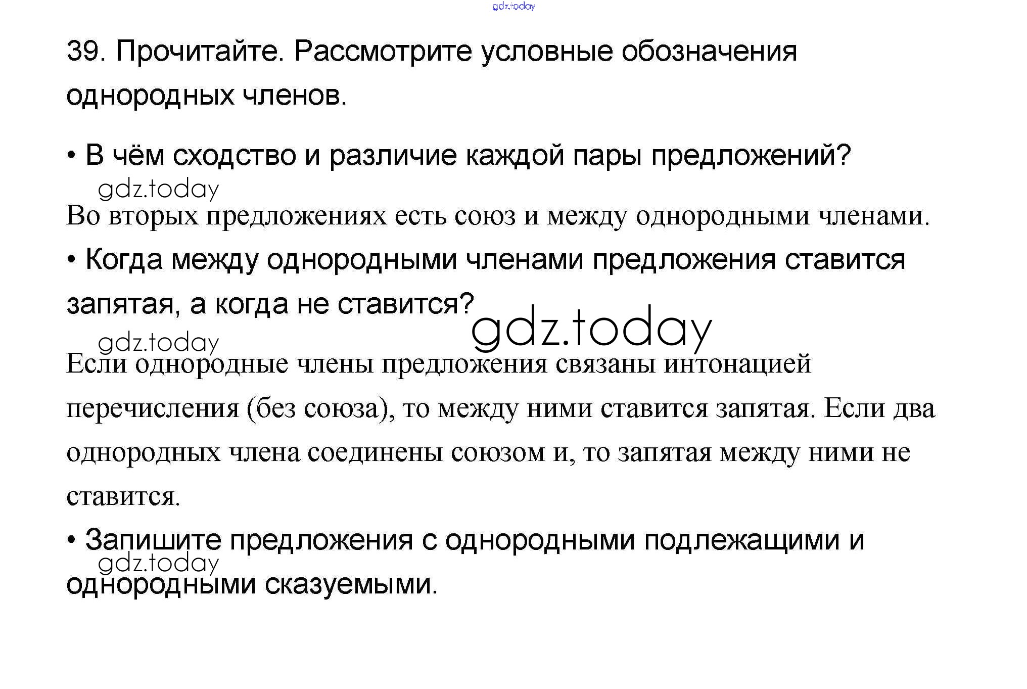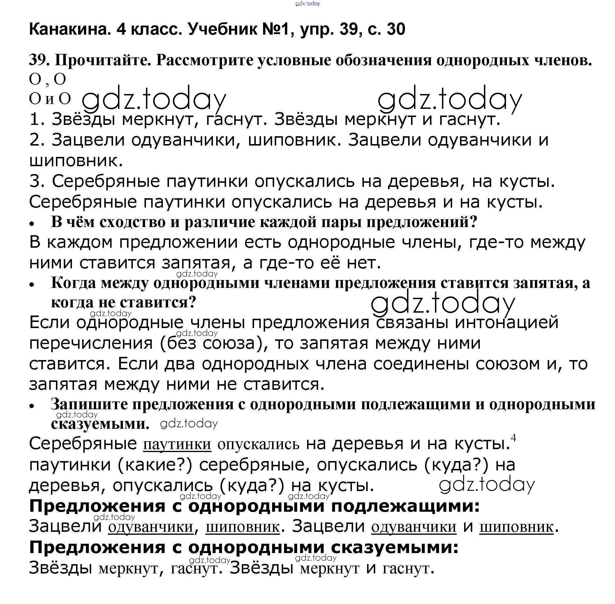 На страницах сайта gdz.today вы найдете учебный и вспомогательный материал, направленный на улучшения знаний школьной программы. ГДЗ - онлайн мир знаний Решение к части 1 39 Учебнику по Русскому языку для 4 класса Канакина, Горецкий Просвещение Школа России 2015