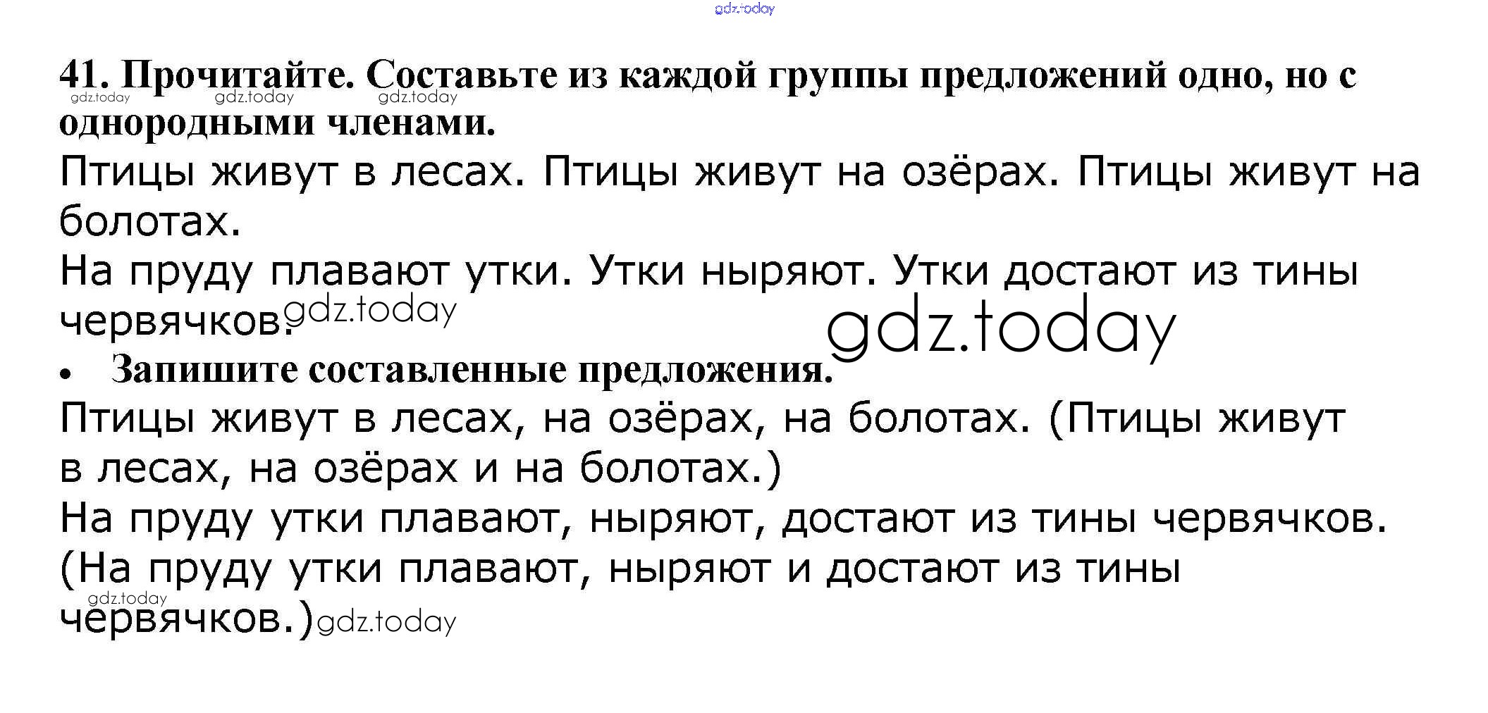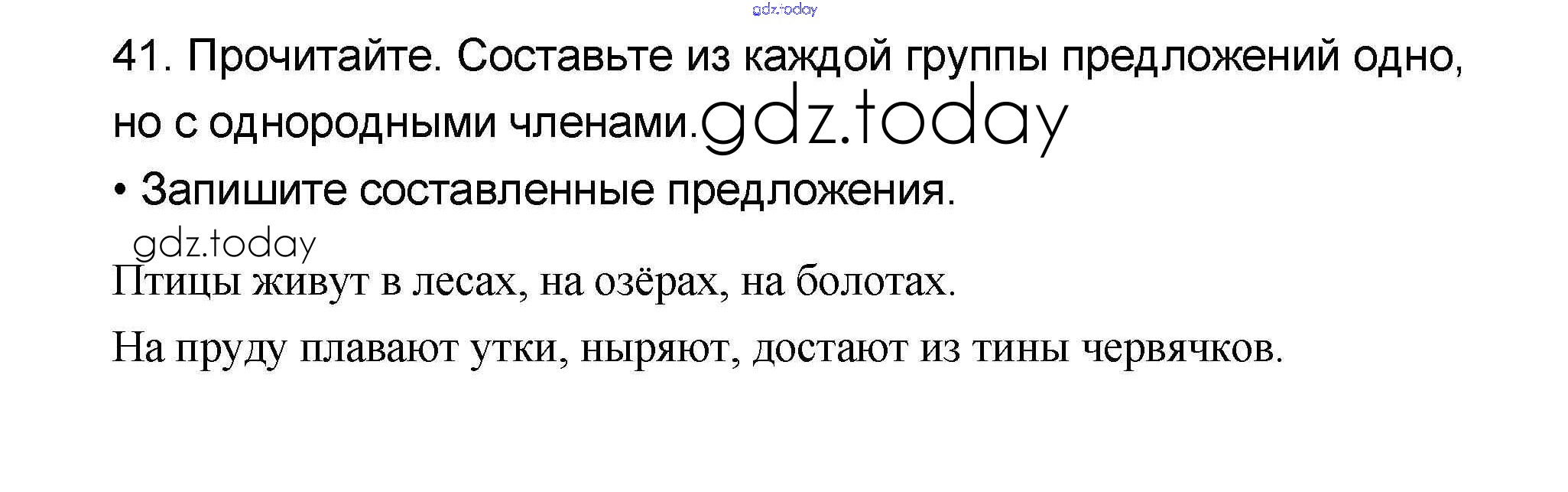 На страницах сайта gdz.today вы найдете учебный и вспомогательный материал, направленный на улучшения знаний школьной программы. ГДЗ - онлайн мир знаний Решение к части 1 41 Учебнику по Русскому языку для 4 класса Канакина, Горецкий Просвещение Школа России 2015