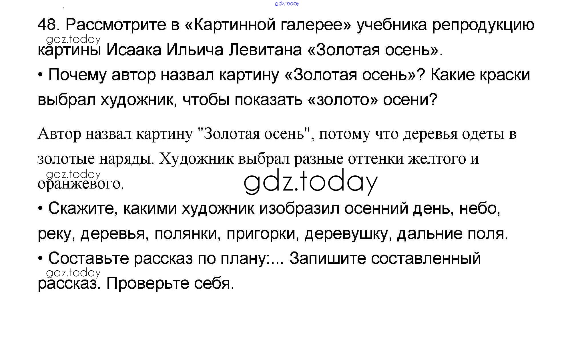 На страницах сайта gdz.today вы найдете учебный и вспомогательный материал, направленный на улучшения знаний школьной программы. ГДЗ - онлайн мир знаний Решение к части 1 48 Учебнику по Русскому языку для 4 класса Канакина, Горецкий Просвещение Школа России 2015