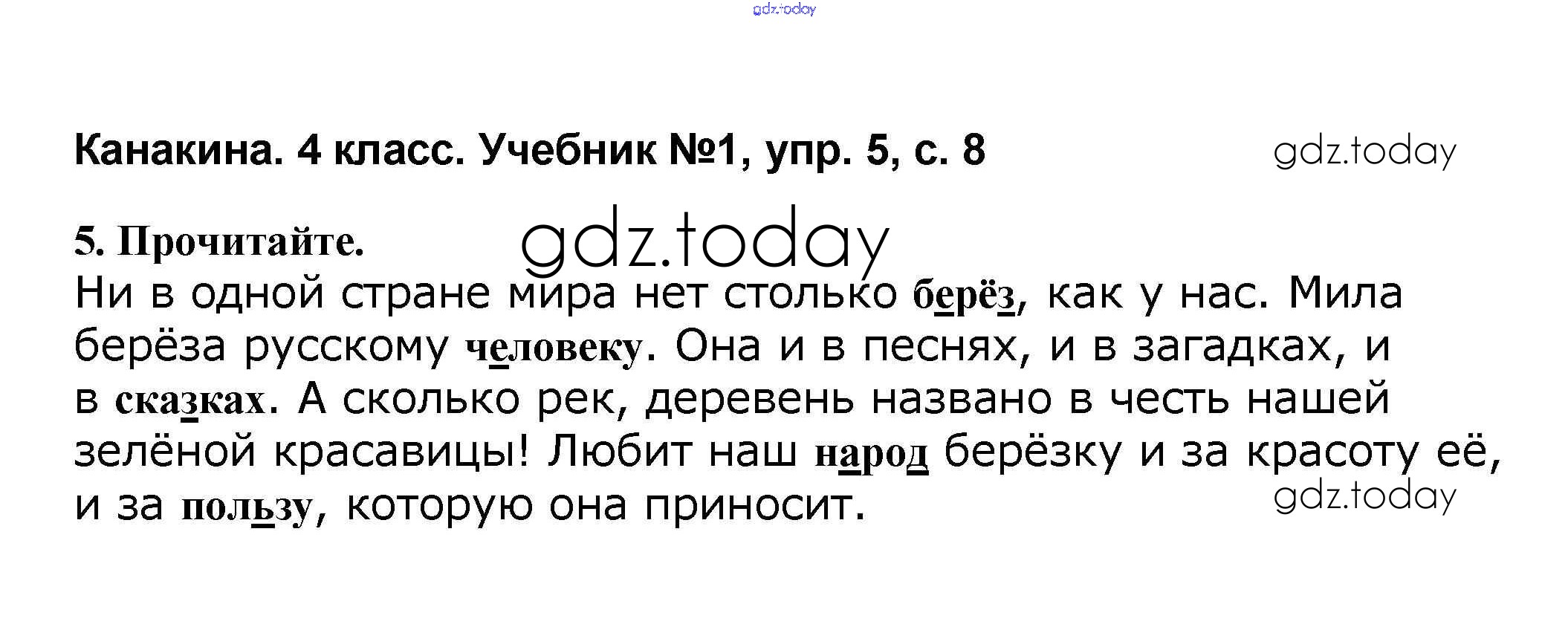 На страницах сайта gdz.today вы найдете учебный и вспомогательный материал, направленный на улучшения знаний школьной программы. ГДЗ - онлайн мир знаний Решение к части 1 5 Учебнику по Русскому языку для 4 класса Канакина, Горецкий Просвещение Школа России 2015