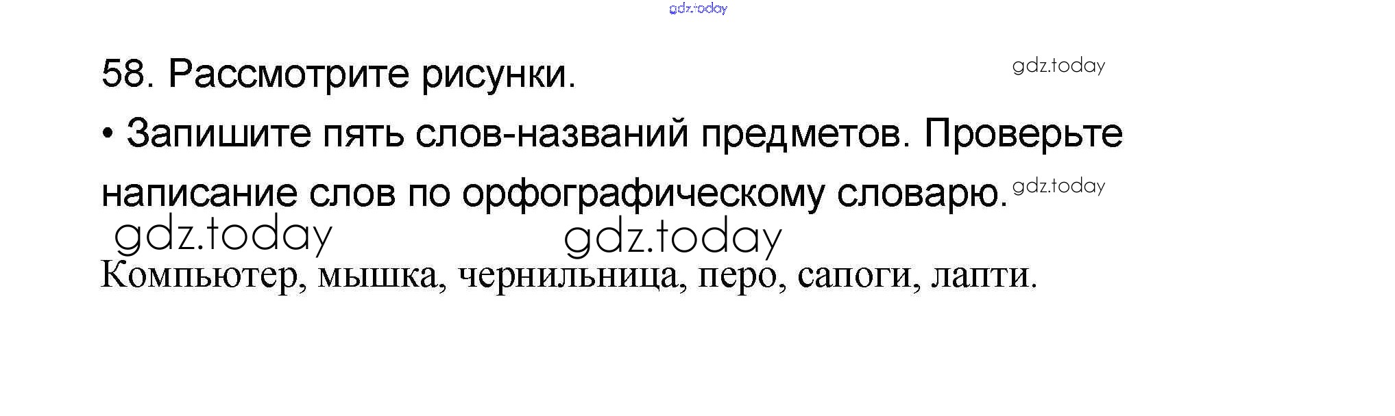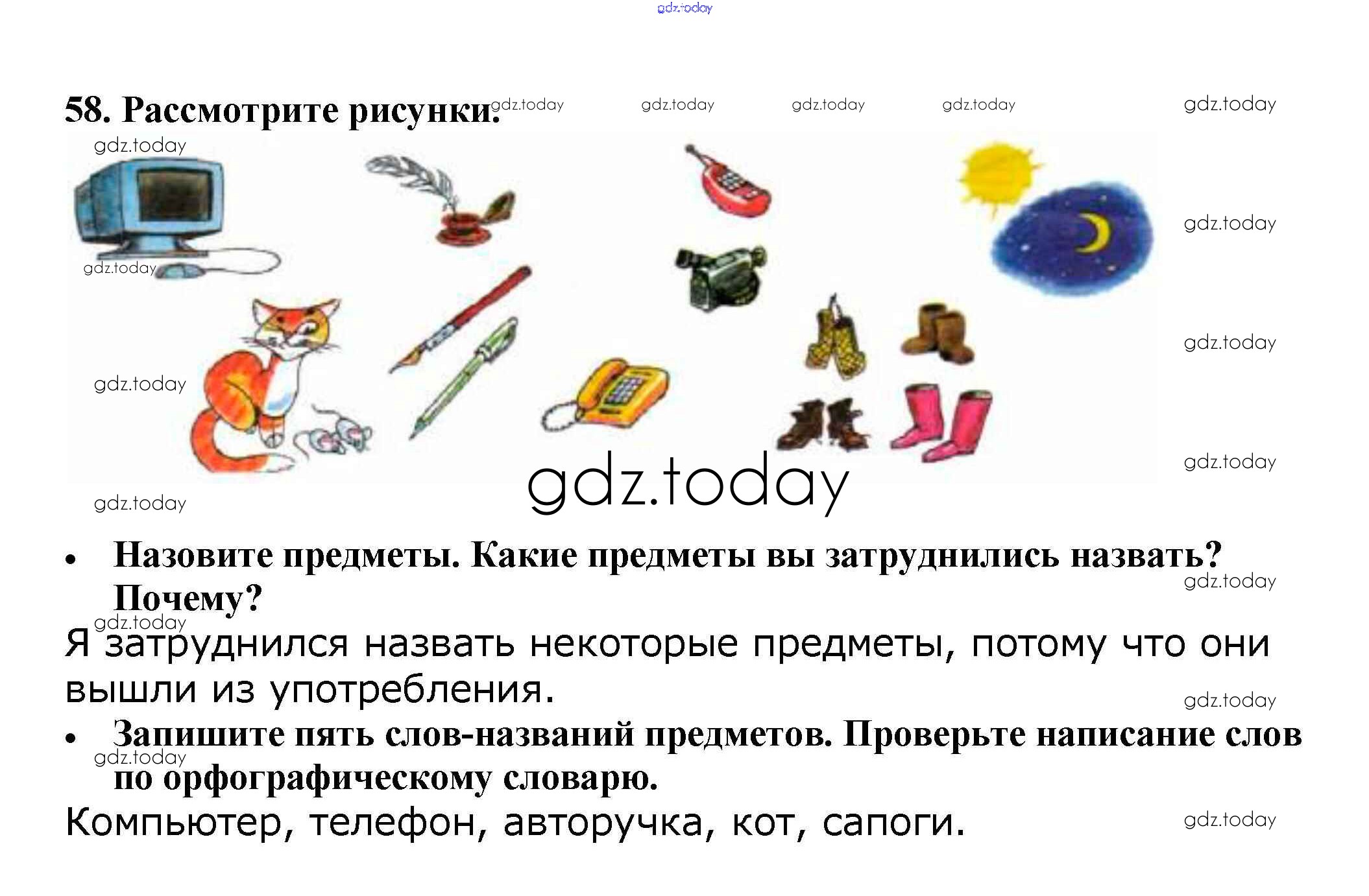 На страницах сайта gdz.today вы найдете учебный и вспомогательный материал, направленный на улучшения знаний школьной программы. ГДЗ - онлайн мир знаний Решение к части 1 58 Учебнику по Русскому языку для 4 класса Канакина, Горецкий Просвещение Школа России 2015