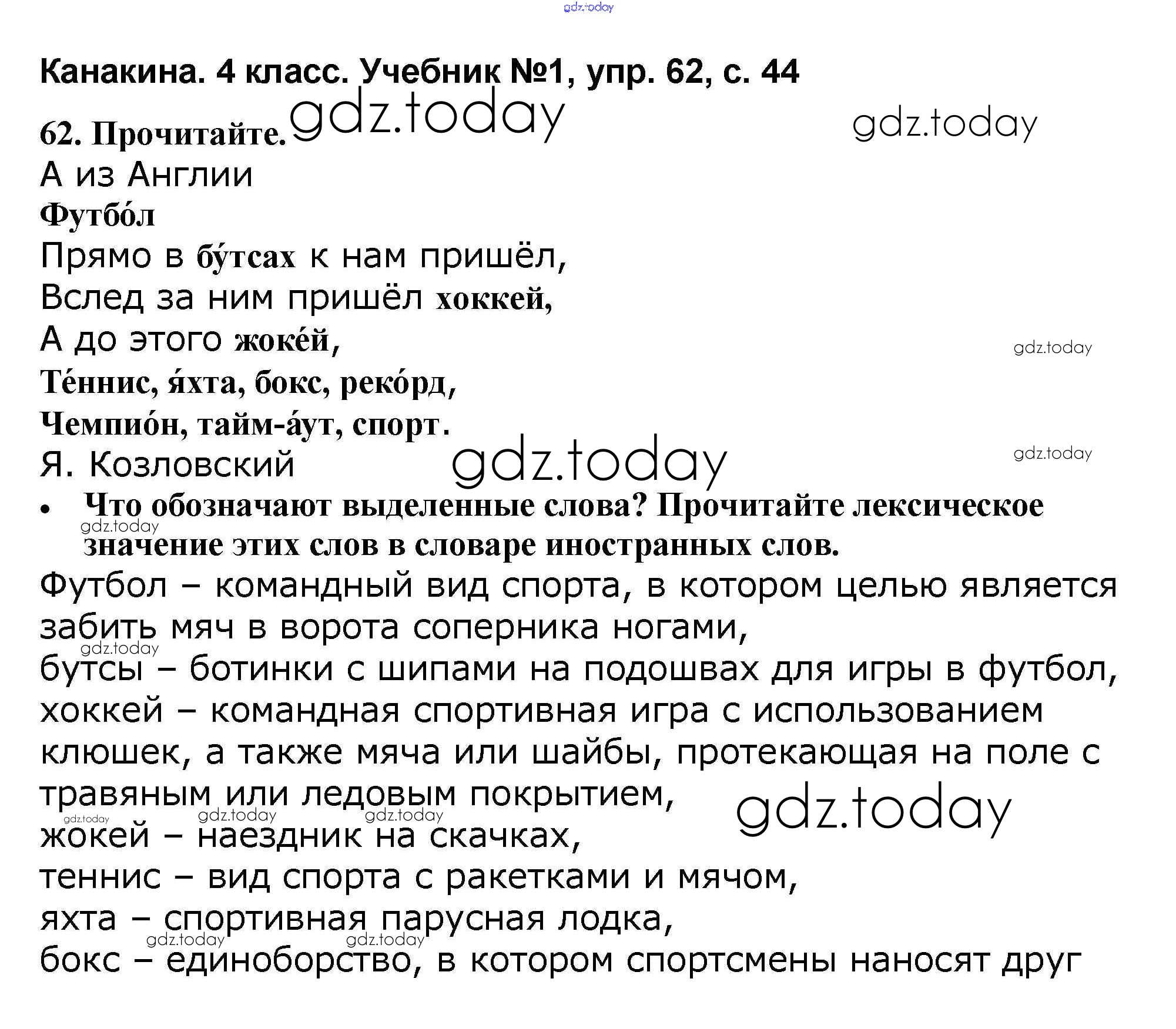 На страницах сайта gdz.today вы найдете учебный и вспомогательный материал, направленный на улучшения знаний школьной программы. ГДЗ - онлайн мир знаний Решение к части 1 62 Учебнику по Русскому языку для 4 класса Канакина, Горецкий Просвещение Школа России 2015