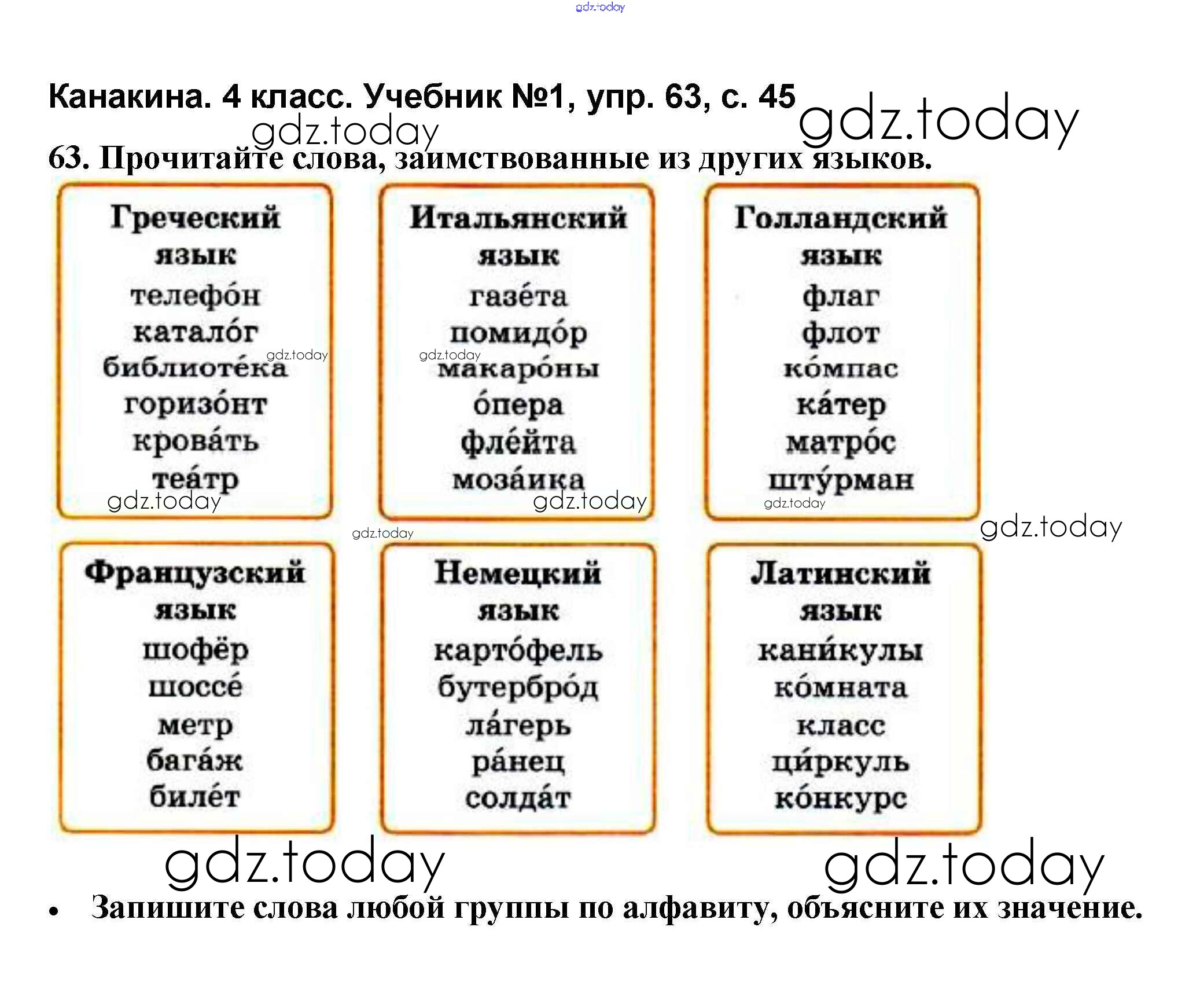 На страницах сайта gdz.today вы найдете учебный и вспомогательный материал, направленный на улучшения знаний школьной программы. ГДЗ - онлайн мир знаний Решение к части 1 63 Учебнику по Русскому языку для 4 класса Канакина, Горецкий Просвещение Школа России 2015