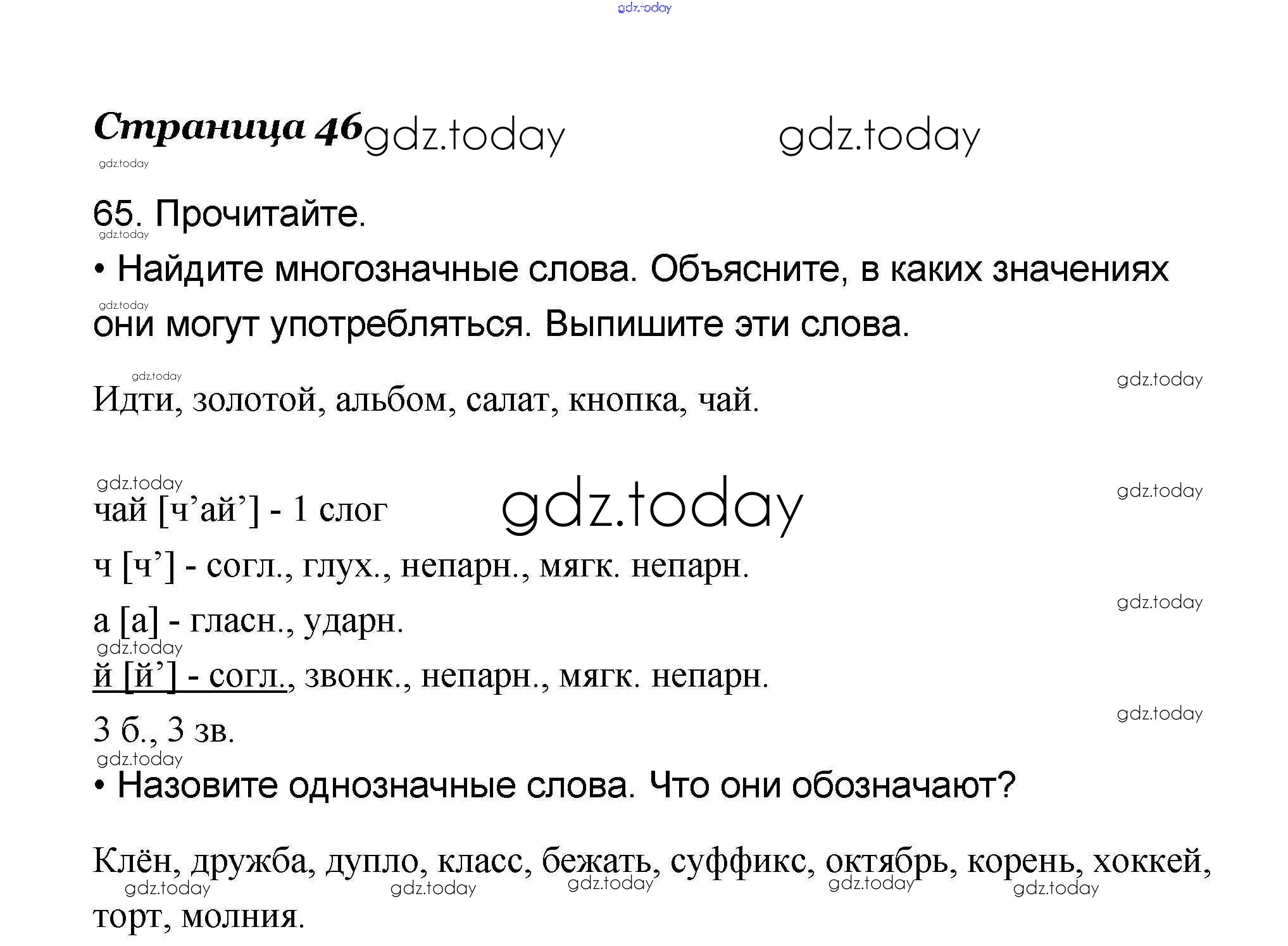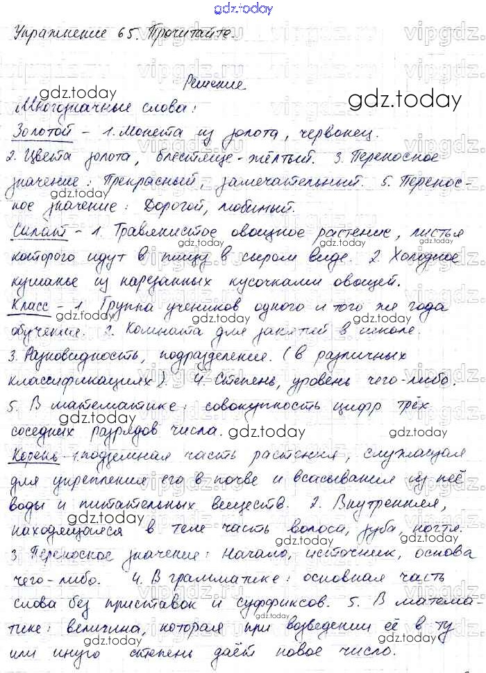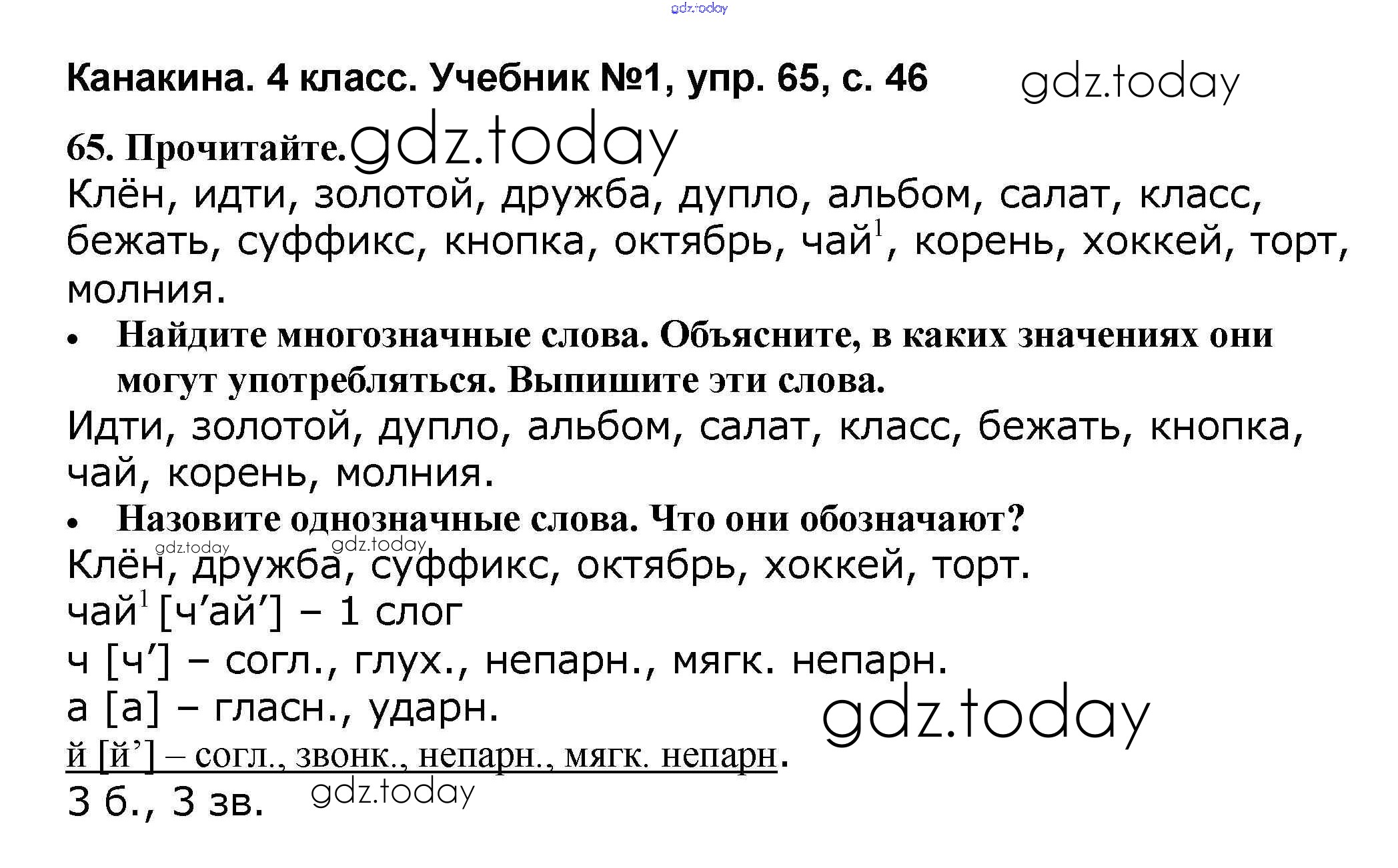 На страницах сайта gdz.today вы найдете учебный и вспомогательный материал, направленный на улучшения знаний школьной программы. ГДЗ - онлайн мир знаний Решение к части 1 65 Учебнику по Русскому языку для 4 класса Канакина, Горецкий Просвещение Школа России 2015