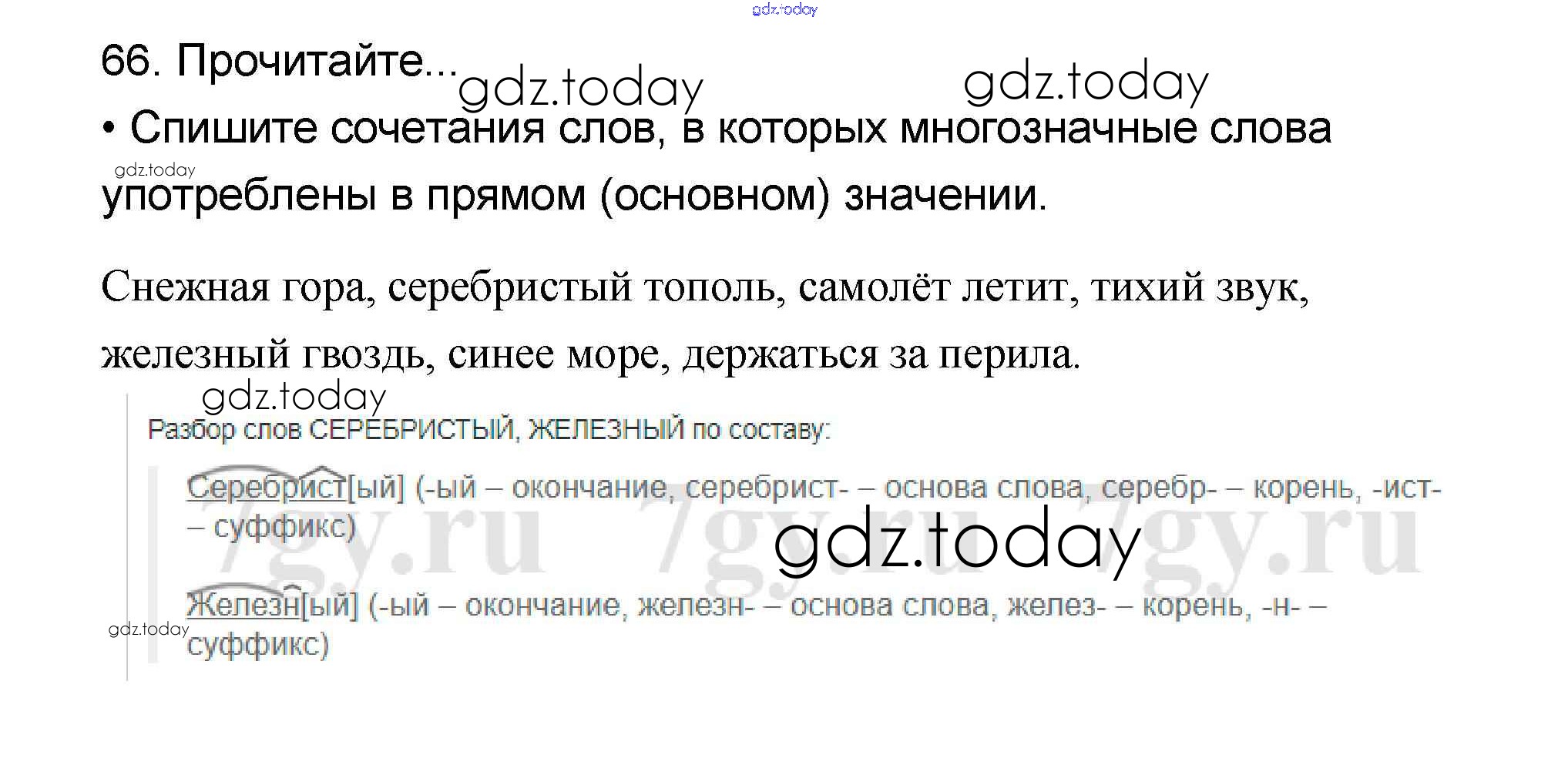 На страницах сайта gdz.today вы найдете учебный и вспомогательный материал, направленный на улучшения знаний школьной программы. ГДЗ - онлайн мир знаний Решение к части 1 66 Учебнику по Русскому языку для 4 класса Канакина, Горецкий Просвещение Школа России 2015