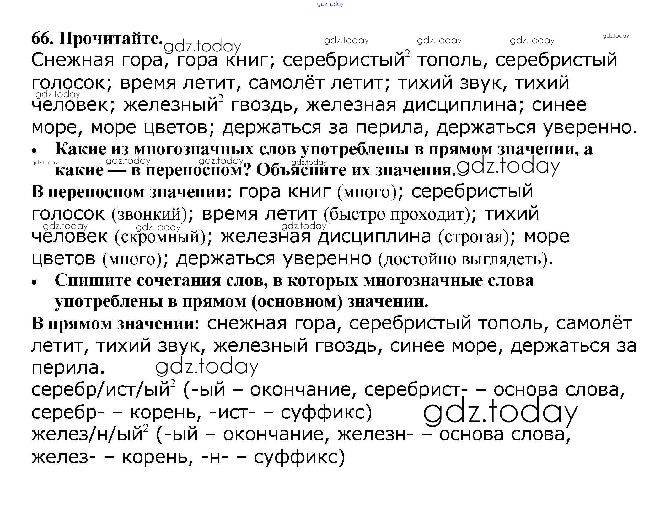 Ответы к Решение к части 1 66 Учебнику по Русскому языку для 4 класса Канакина, Горецкий Просвещение Школа России 2015