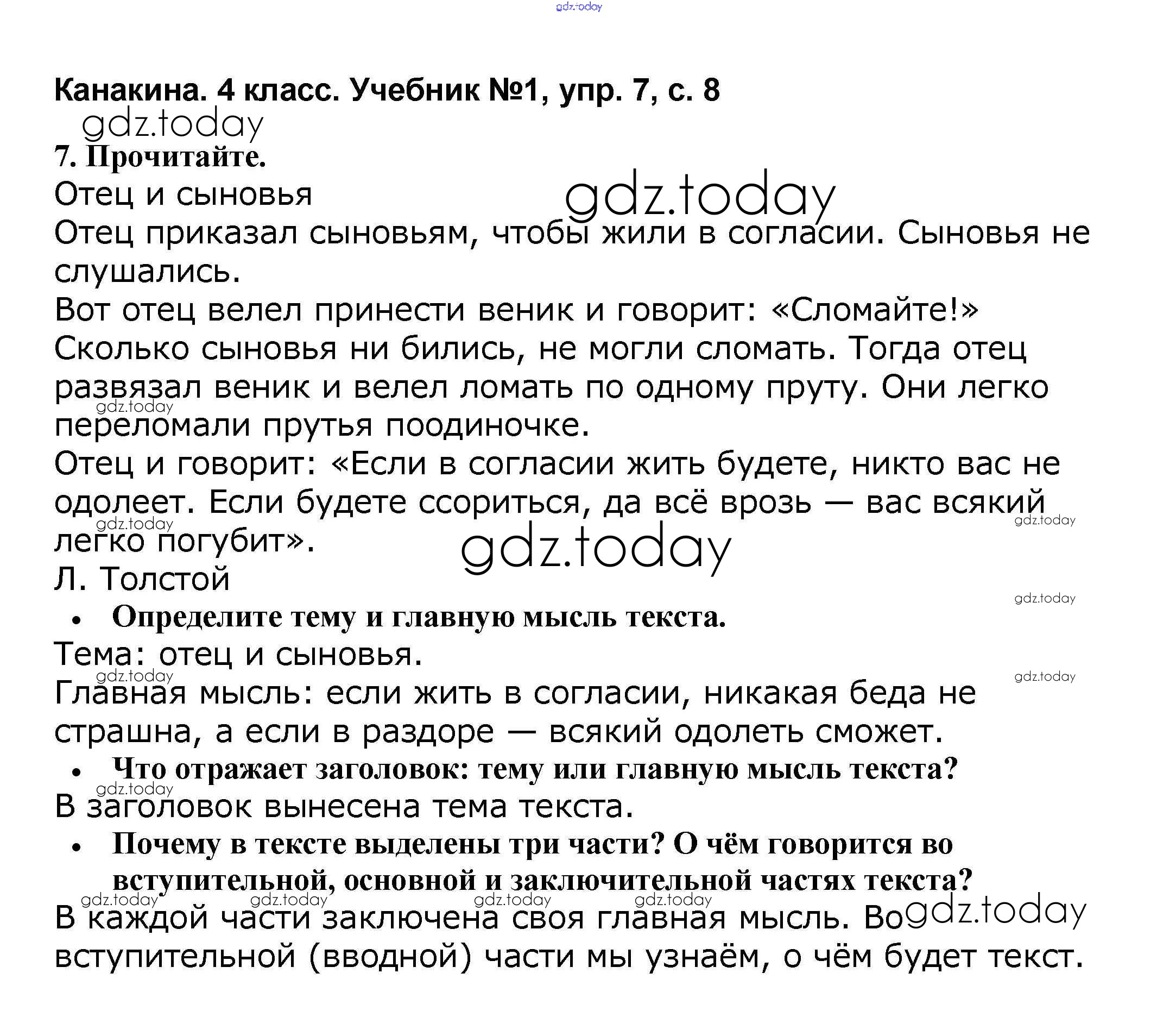 На страницах сайта gdz.today вы найдете учебный и вспомогательный материал, направленный на улучшения знаний школьной программы. ГДЗ - онлайн мир знаний Решение к части 1 7 Учебнику по Русскому языку для 4 класса Канакина, Горецкий Просвещение Школа России 2015