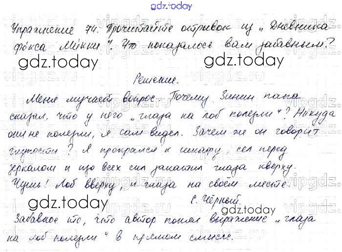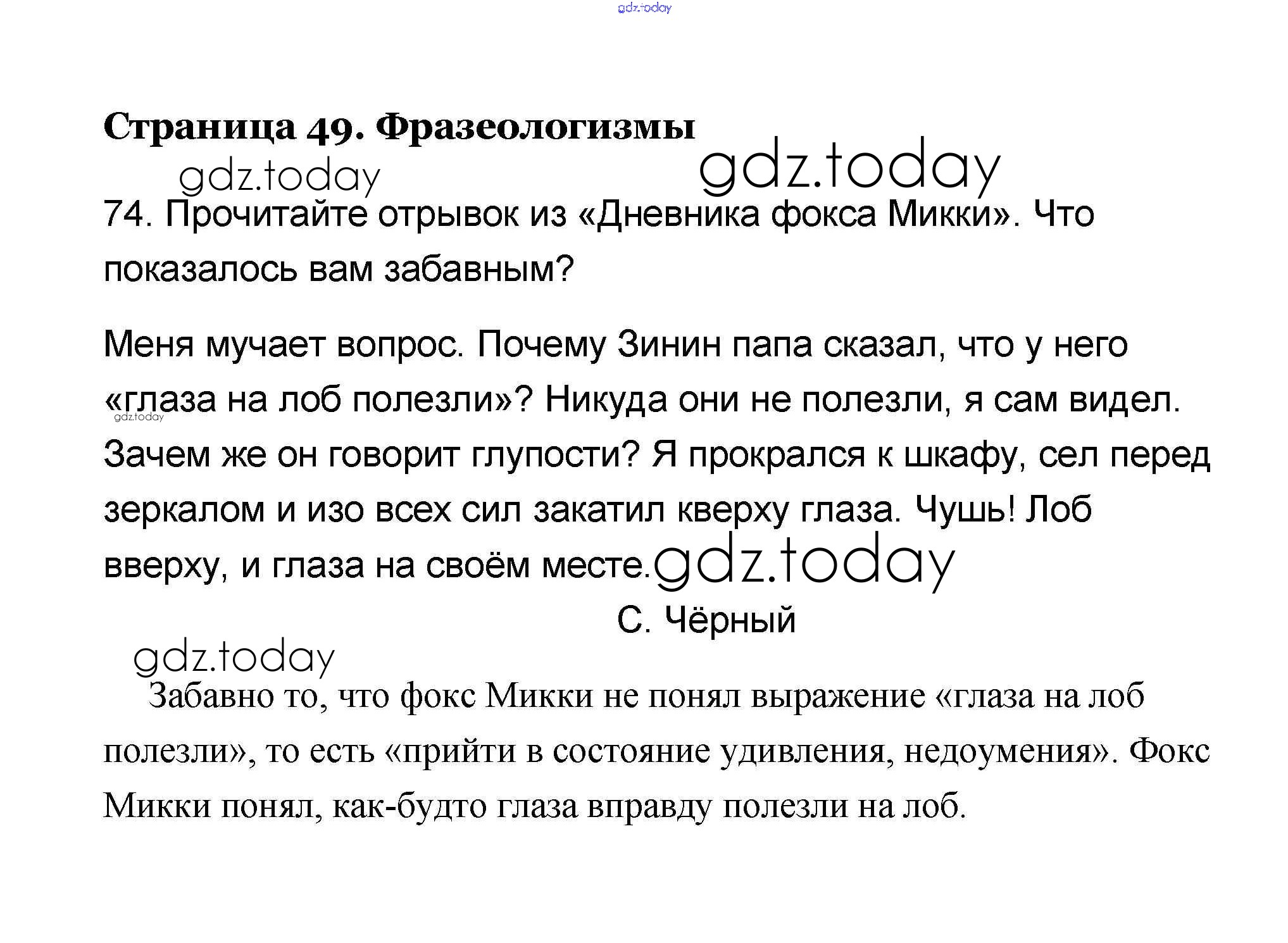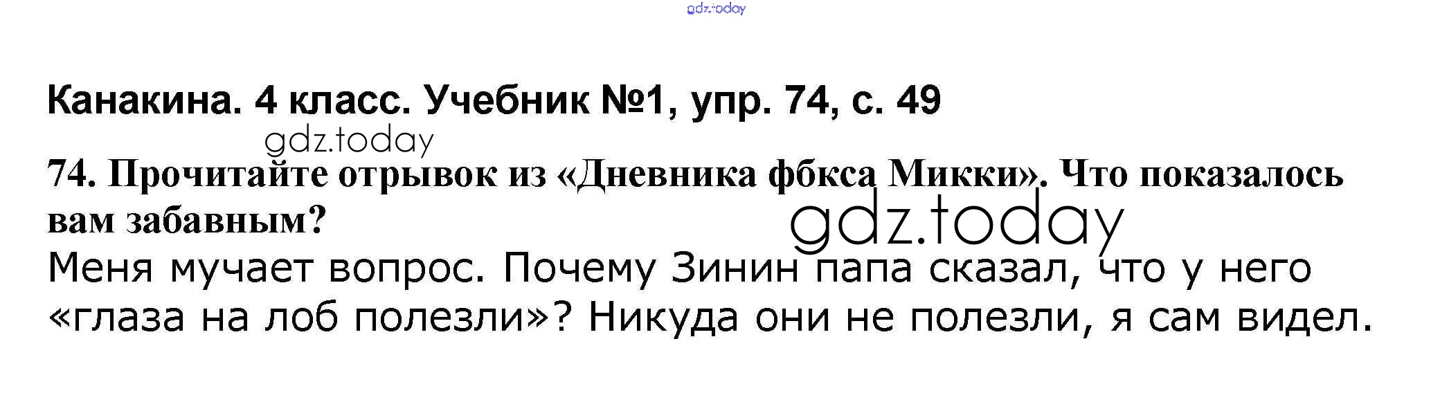 На страницах сайта gdz.today вы найдете учебный и вспомогательный материал, направленный на улучшения знаний школьной программы. ГДЗ - онлайн мир знаний Решение к части 1 74 Учебнику по Русскому языку для 4 класса Канакина, Горецкий Просвещение Школа России 2015