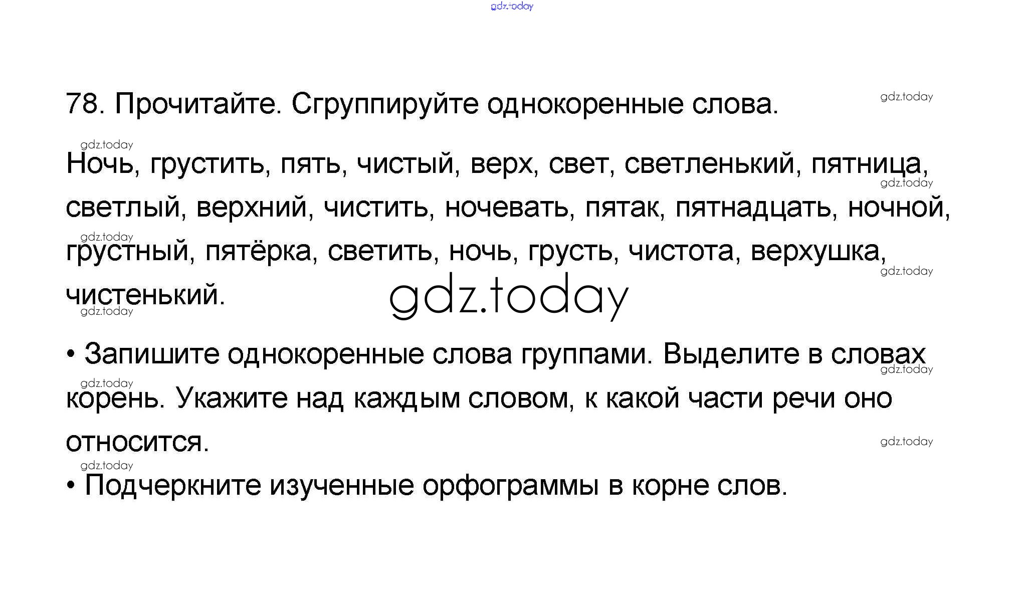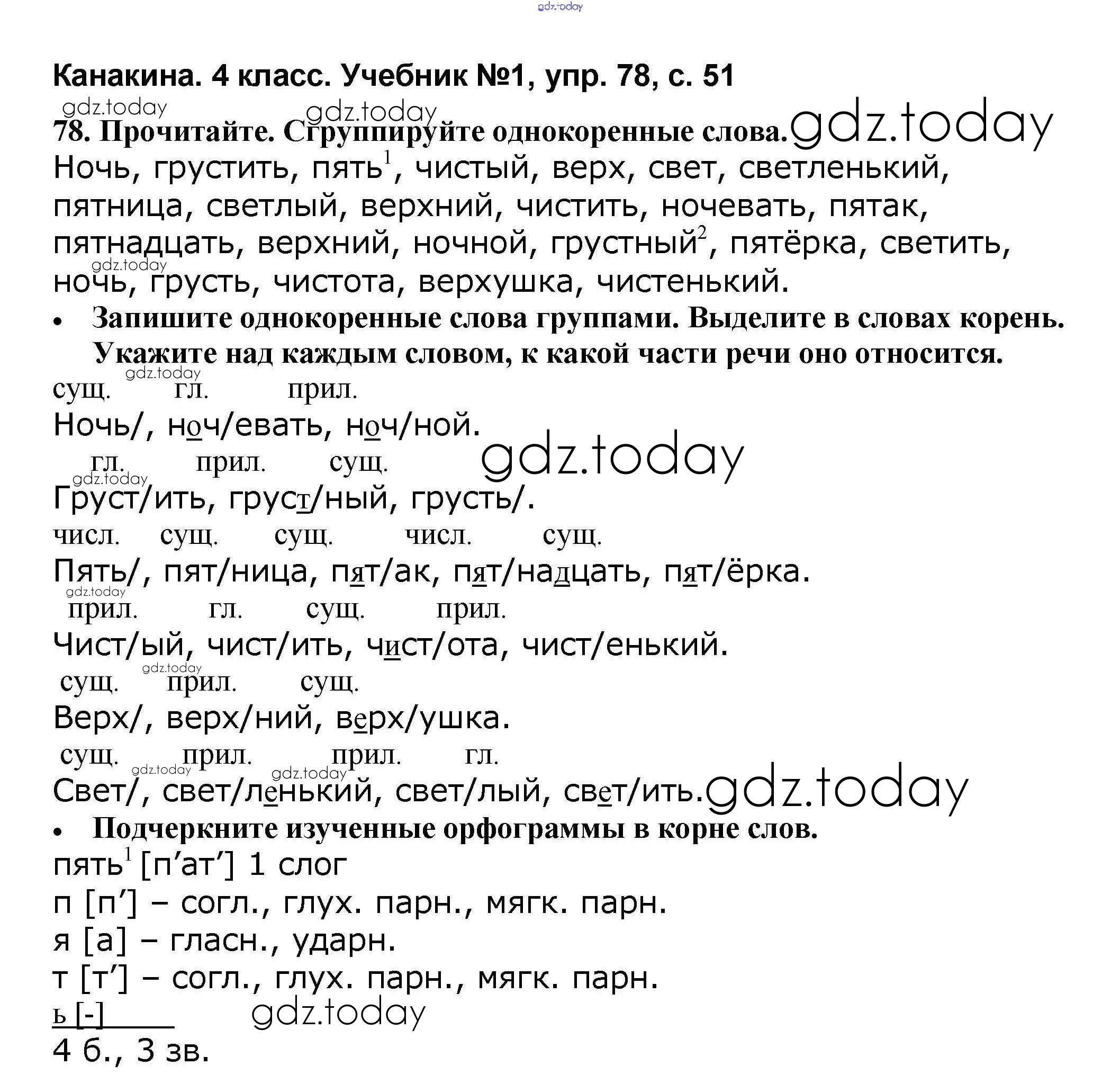 На страницах сайта gdz.today вы найдете учебный и вспомогательный материал, направленный на улучшения знаний школьной программы. ГДЗ - онлайн мир знаний Решение к части 1 78 Учебнику по Русскому языку для 4 класса Канакина, Горецкий Просвещение Школа России 2015