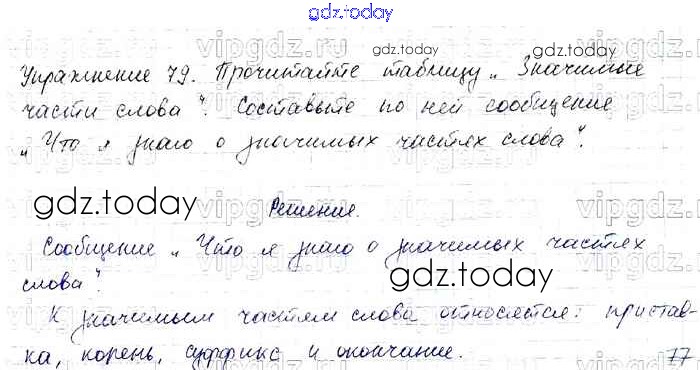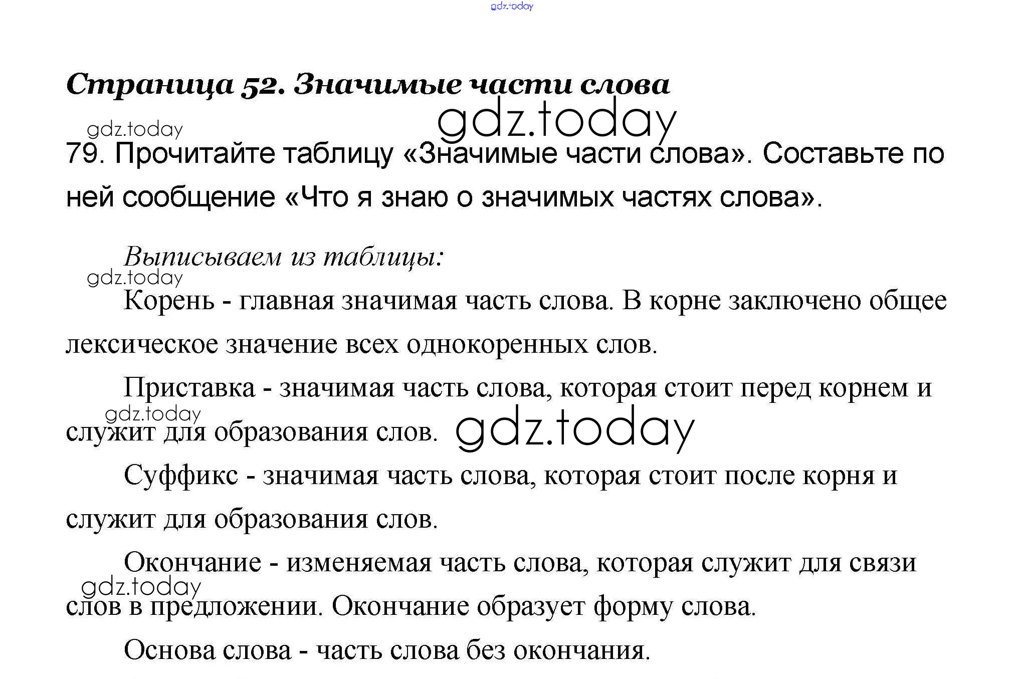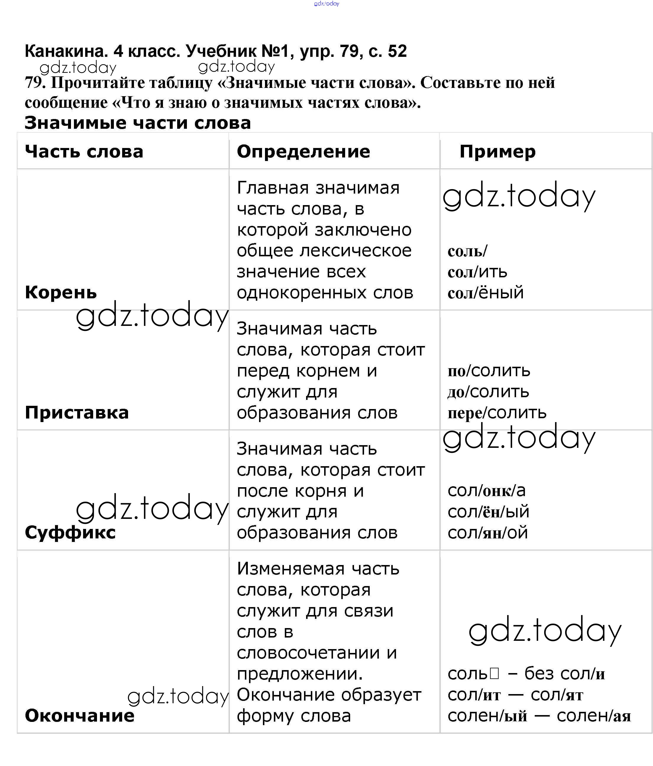 На страницах сайта gdz.today вы найдете учебный и вспомогательный материал, направленный на улучшения знаний школьной программы. ГДЗ - онлайн мир знаний Решение к части 1 79 Учебнику по Русскому языку для 4 класса Канакина, Горецкий Просвещение Школа России 2015