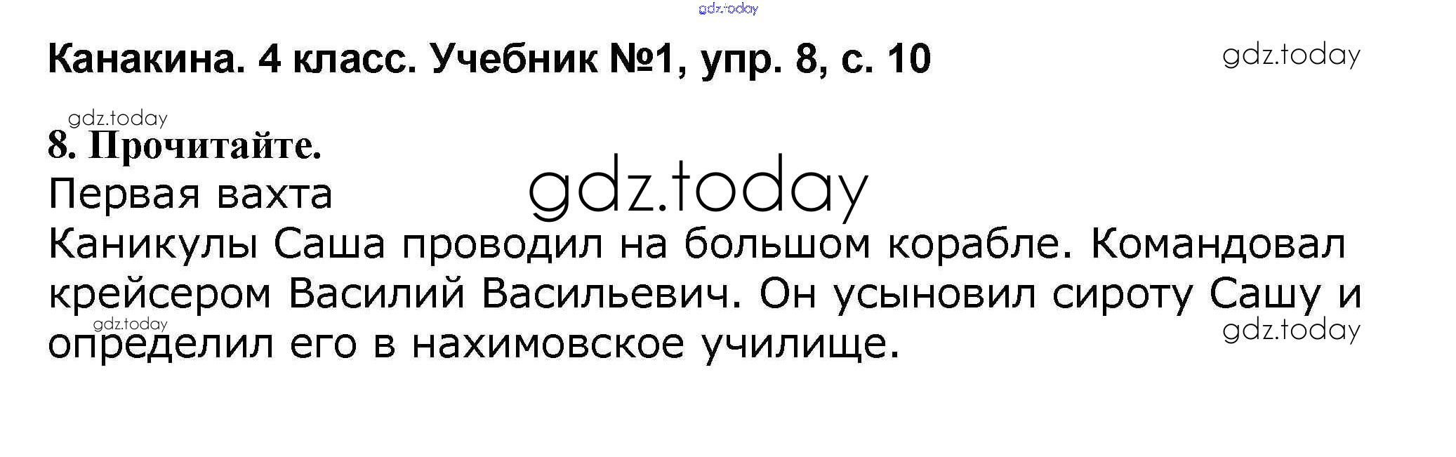 На страницах сайта gdz.today вы найдете учебный и вспомогательный материал, направленный на улучшения знаний школьной программы. ГДЗ - онлайн мир знаний Решение к части 1 8 Учебнику по Русскому языку для 4 класса Канакина, Горецкий Просвещение Школа России 2015