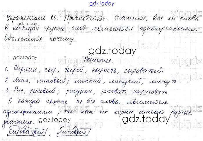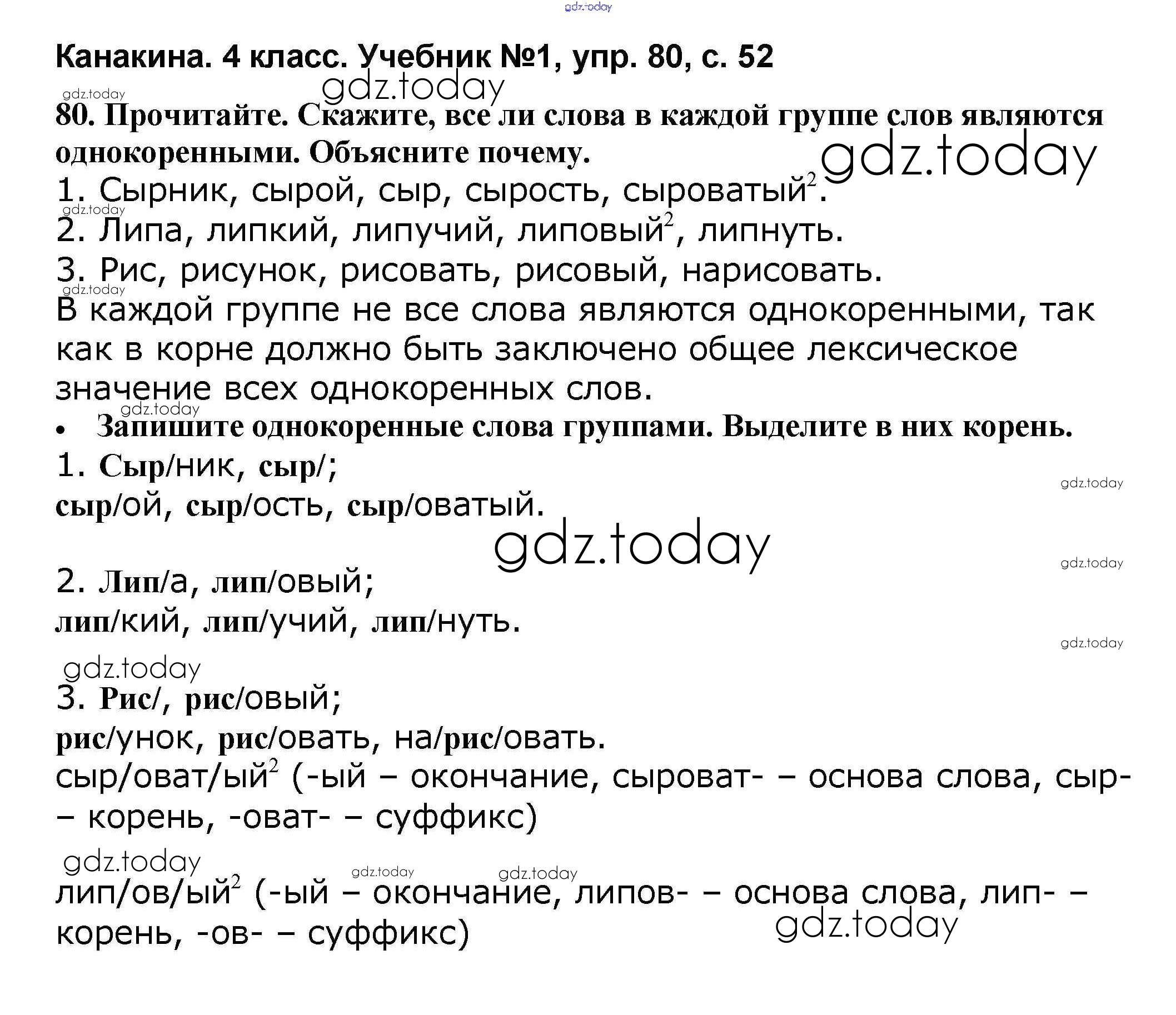 Ответы к Решение к части 1 80 Учебнику по Русскому языку для 4 класса Канакина, Горецкий Просвещение Школа России 2015
