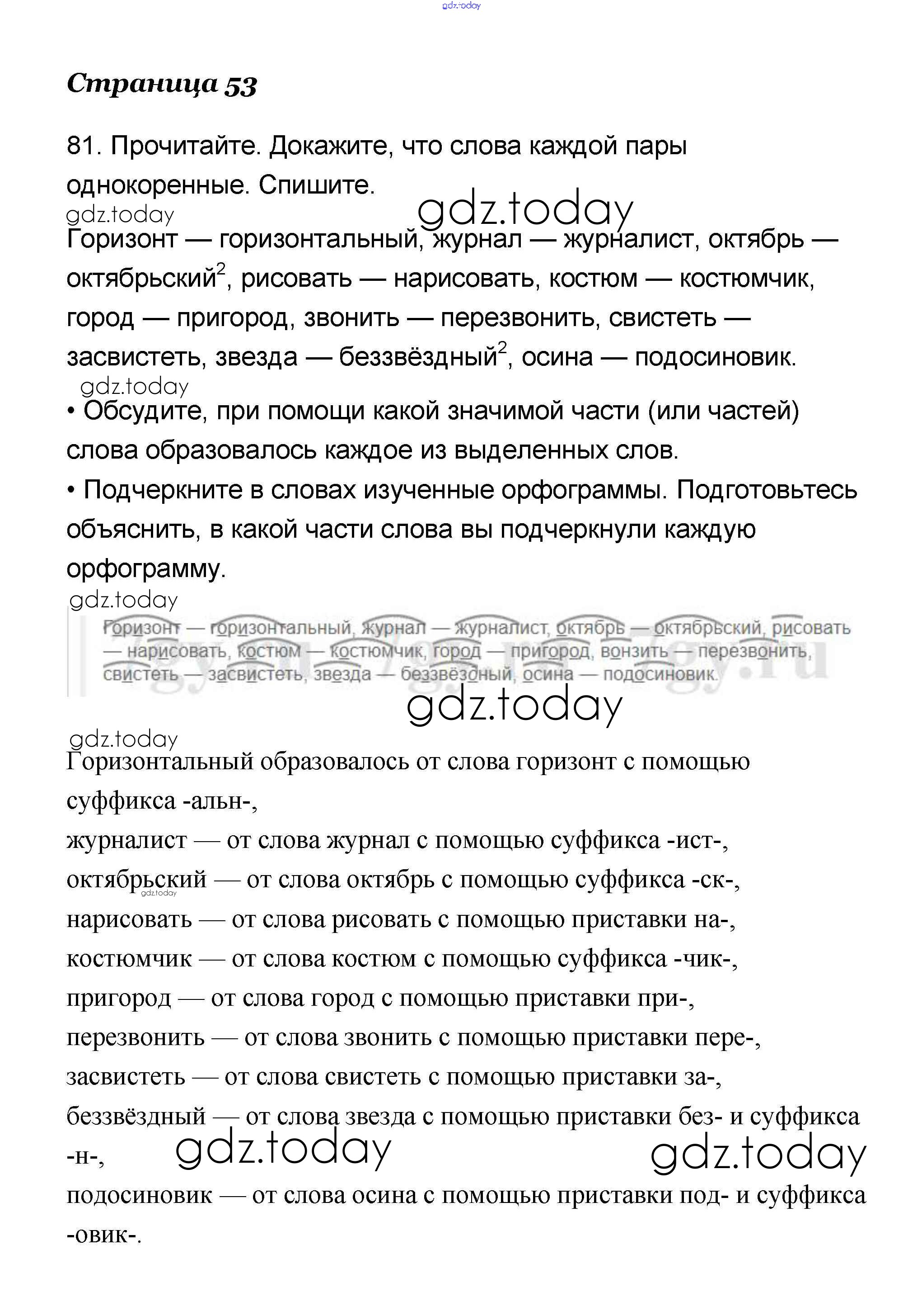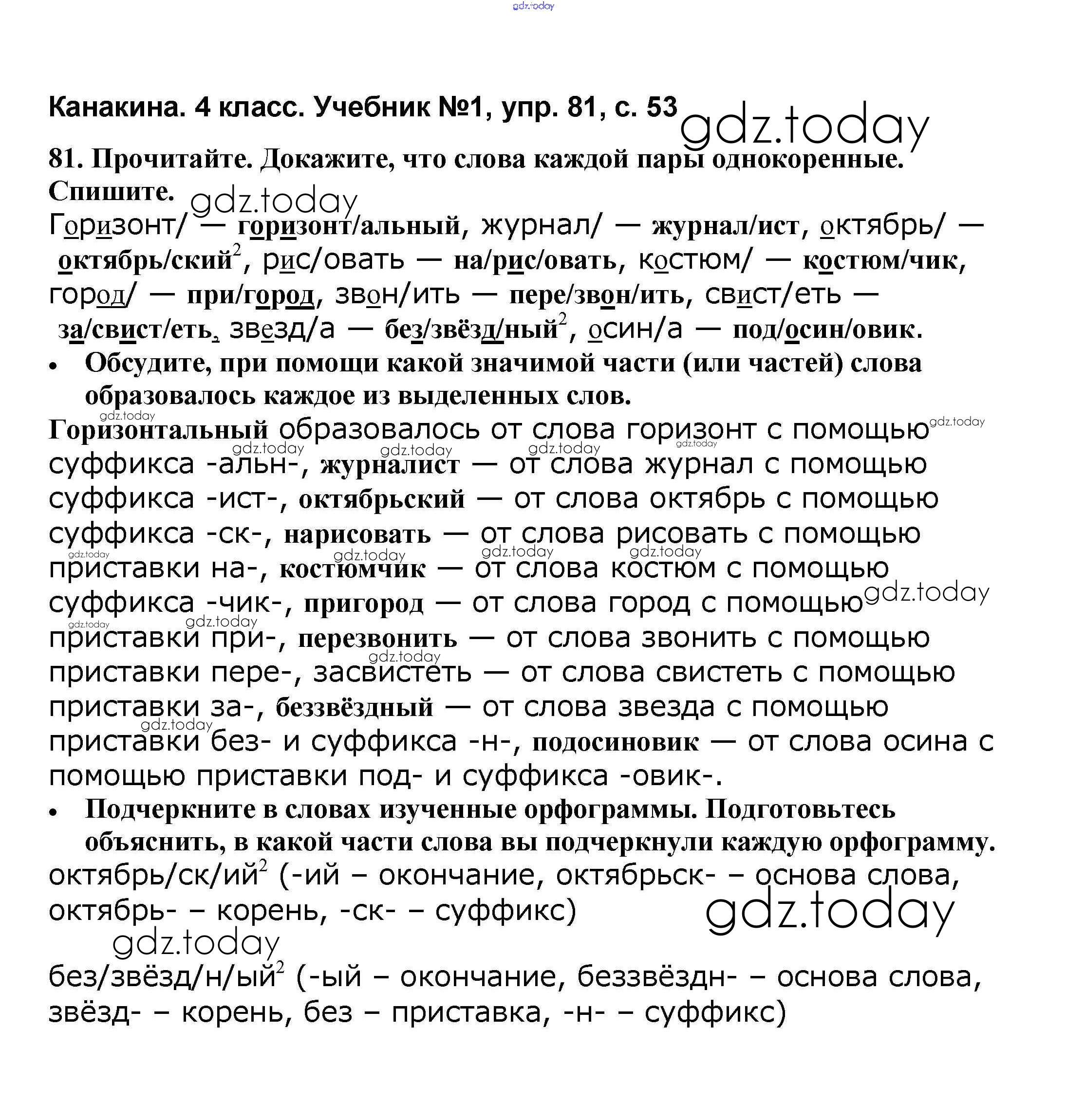 На страницах сайта gdz.today вы найдете учебный и вспомогательный материал, направленный на улучшения знаний школьной программы. ГДЗ - онлайн мир знаний Решение к части 1 81 Учебнику по Русскому языку для 4 класса Канакина, Горецкий Просвещение Школа России 2015