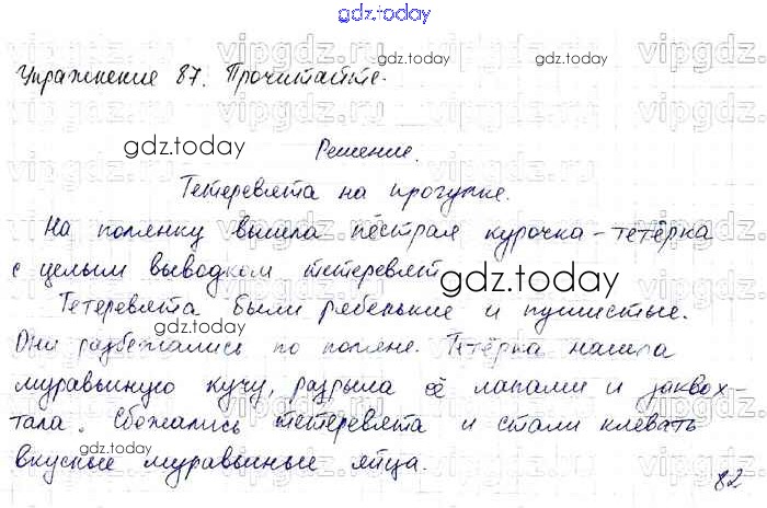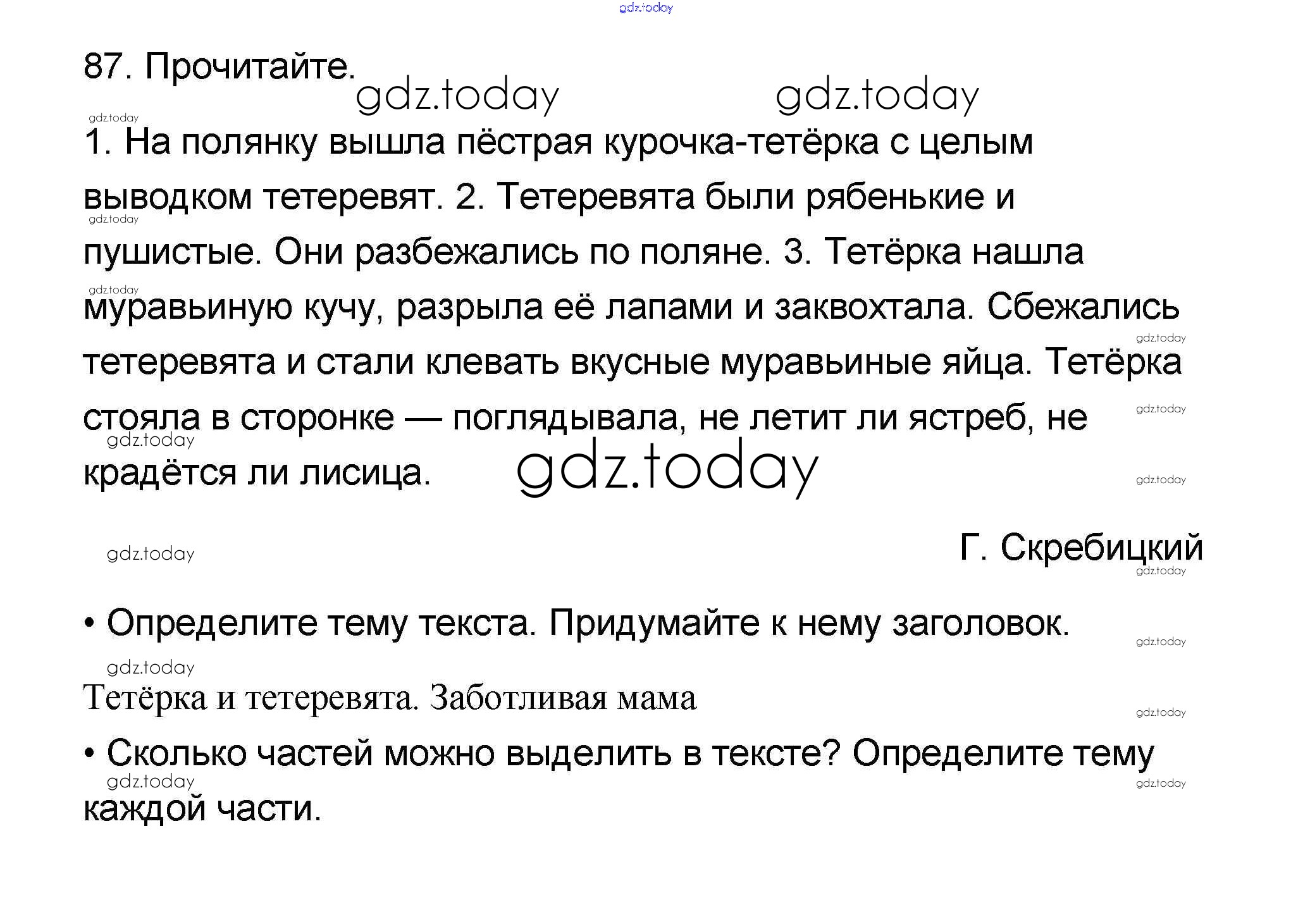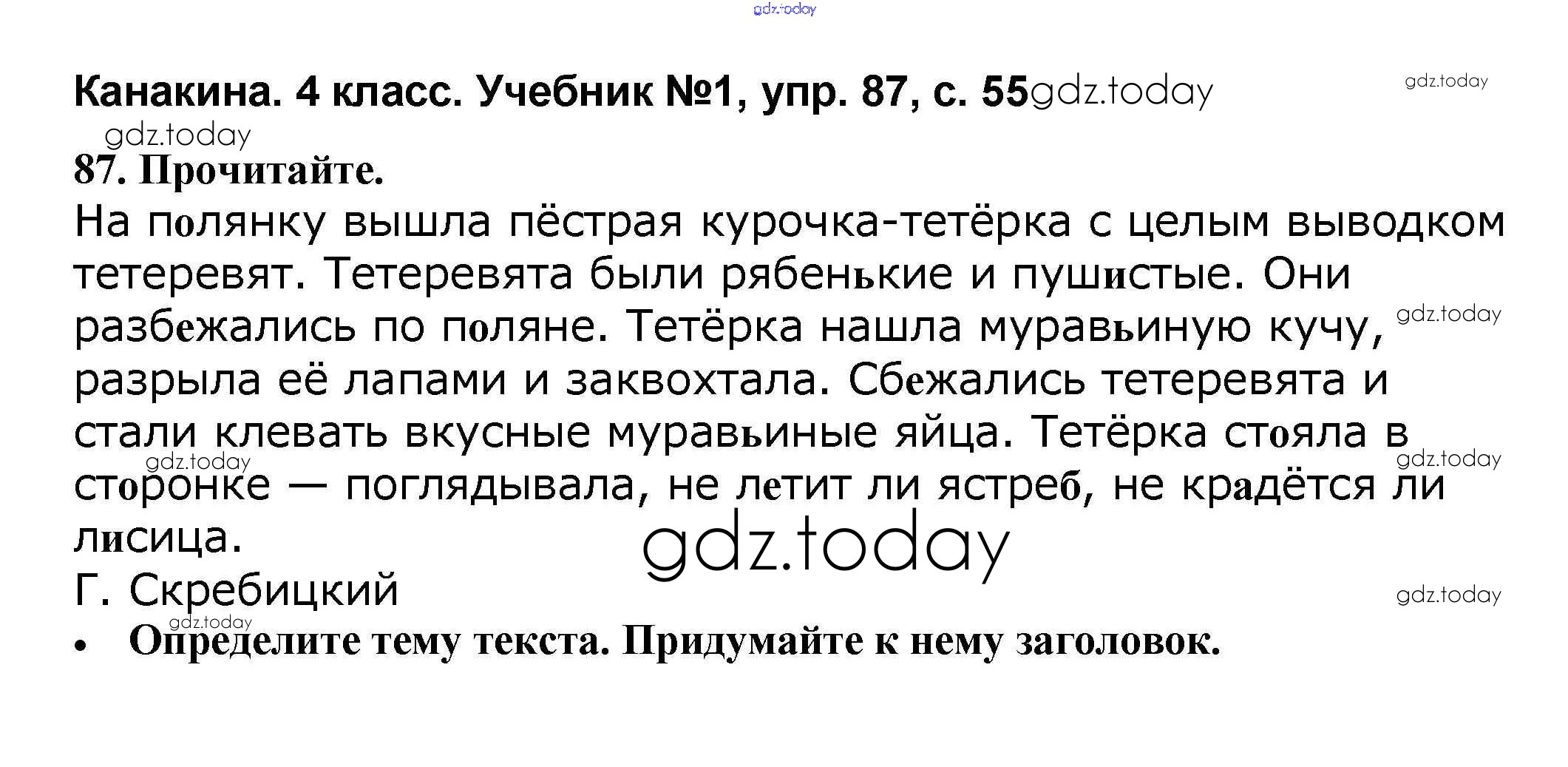 На страницах сайта gdz.today вы найдете учебный и вспомогательный материал, направленный на улучшения знаний школьной программы. ГДЗ - онлайн мир знаний Решение к части 1 87 Учебнику по Русскому языку для 4 класса Канакина, Горецкий Просвещение Школа России 2015