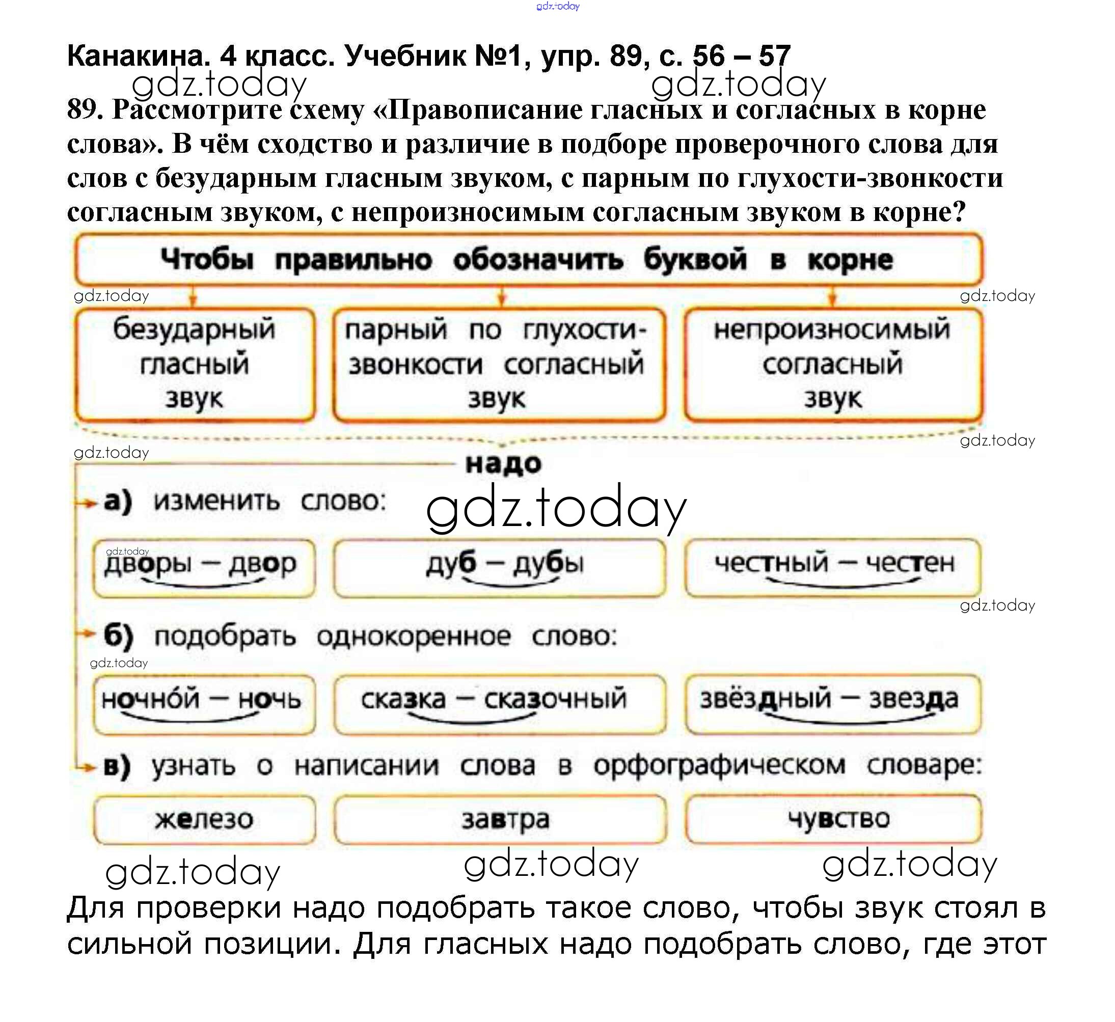 На страницах сайта gdz.today вы найдете учебный и вспомогательный материал, направленный на улучшения знаний школьной программы. ГДЗ - онлайн мир знаний Решение к части 1 89 Учебнику по Русскому языку для 4 класса Канакина, Горецкий Просвещение Школа России 2015