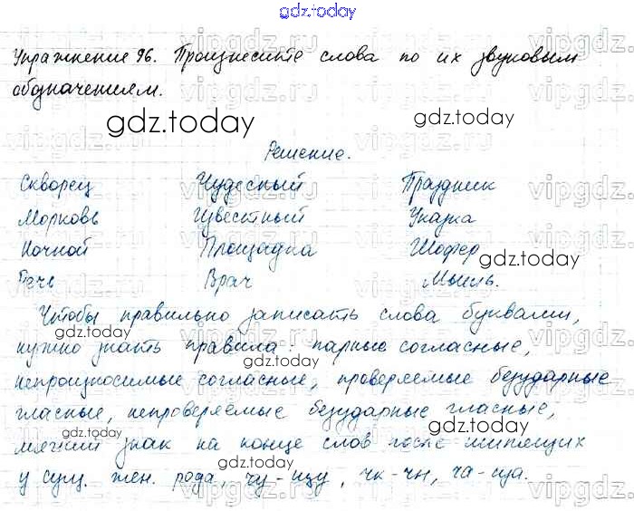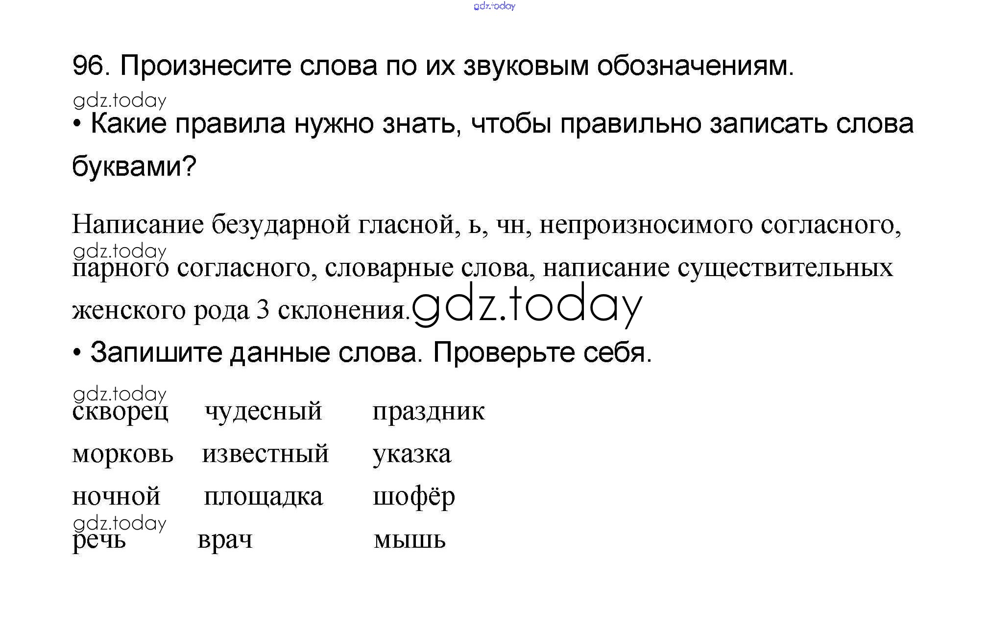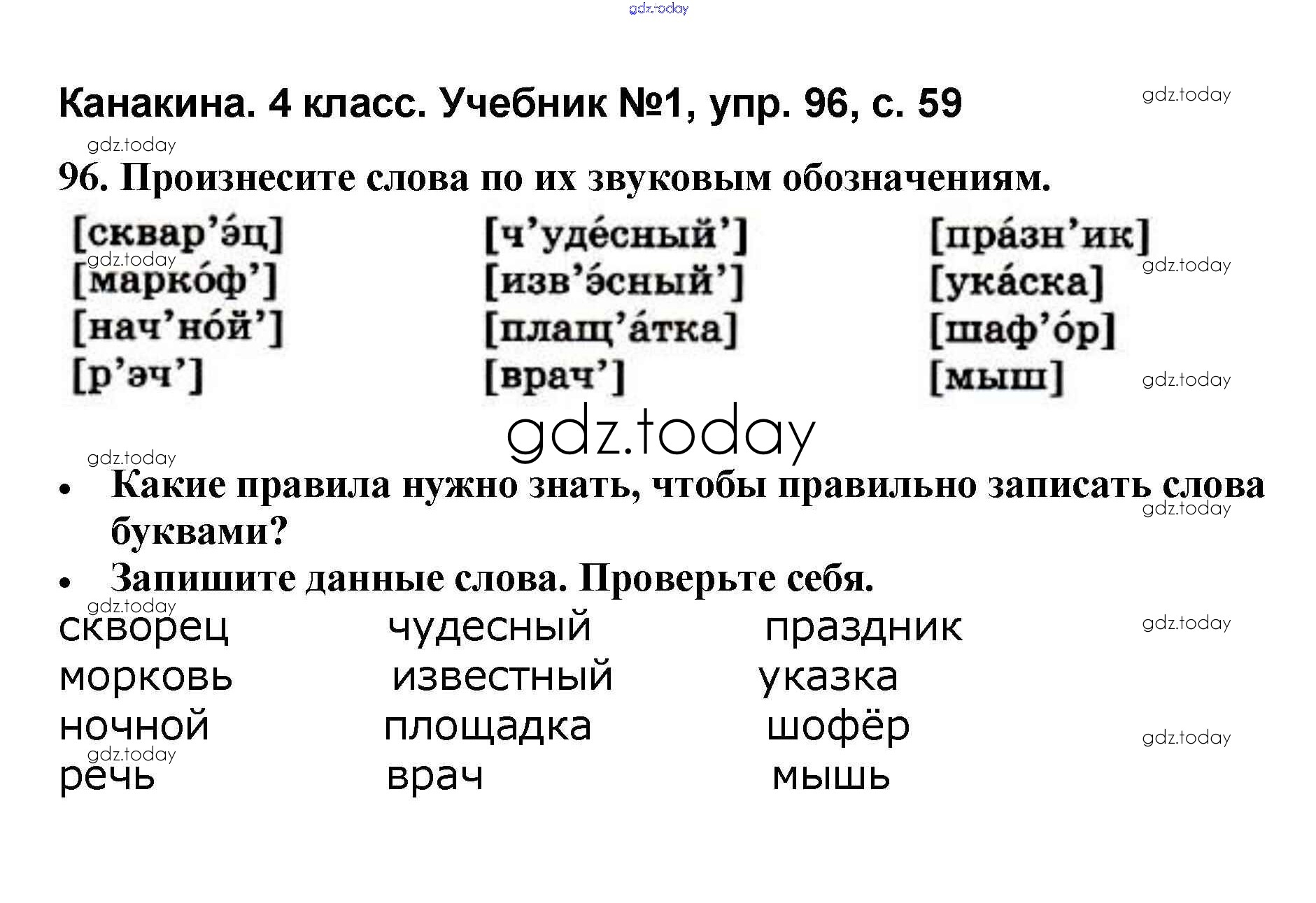 На страницах сайта gdz.today вы найдете учебный и вспомогательный материал, направленный на улучшения знаний школьной программы. ГДЗ - онлайн мир знаний Решение к части 1 96 Учебнику по Русскому языку для 4 класса Канакина, Горецкий Просвещение Школа России 2015