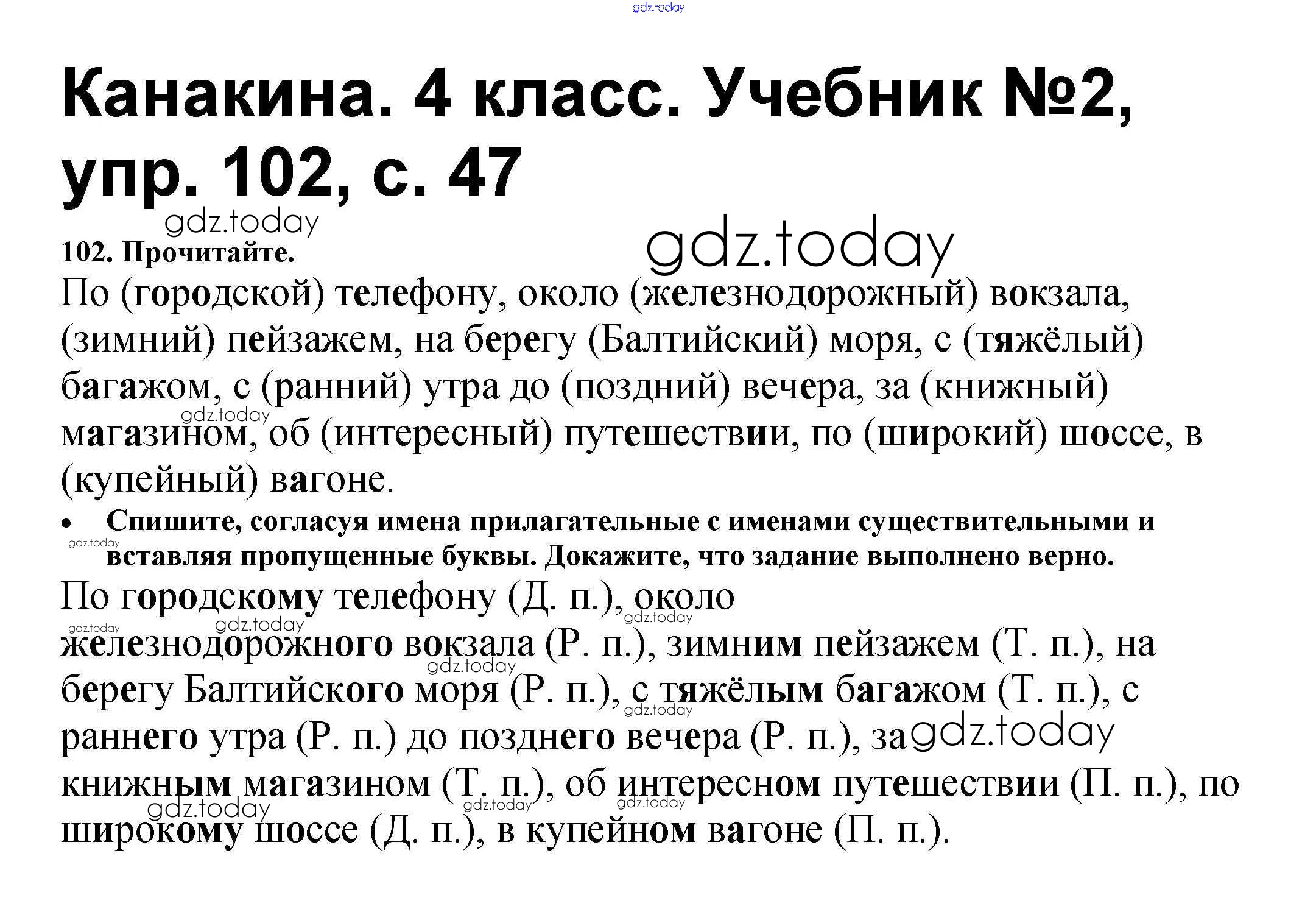 Ответы к Решение к части 2 102 Учебнику по Русскому языку для 4 класса Канакина, Горецкий Просвещение Школа России 2015