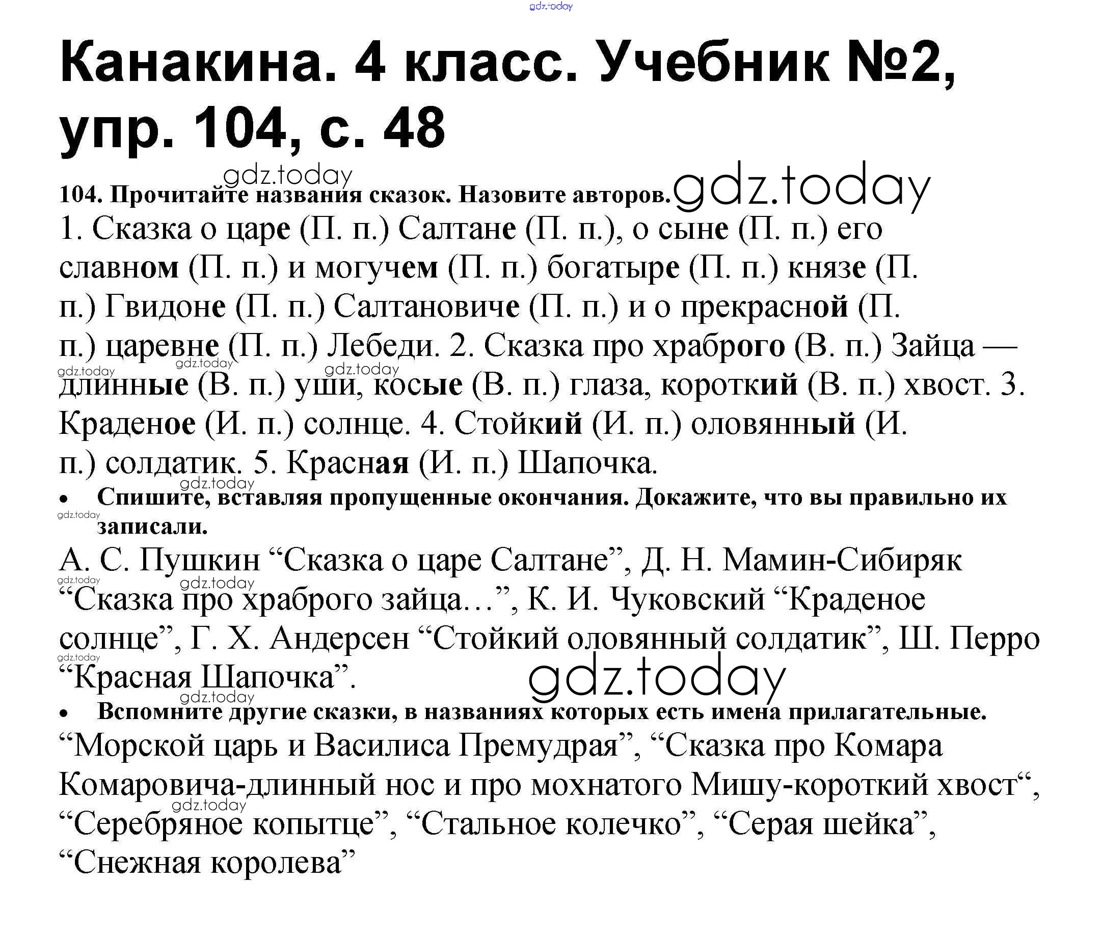 Ответы к Решение к части 2 104 Учебнику по Русскому языку для 4 класса Канакина, Горецкий Просвещение Школа России 2015