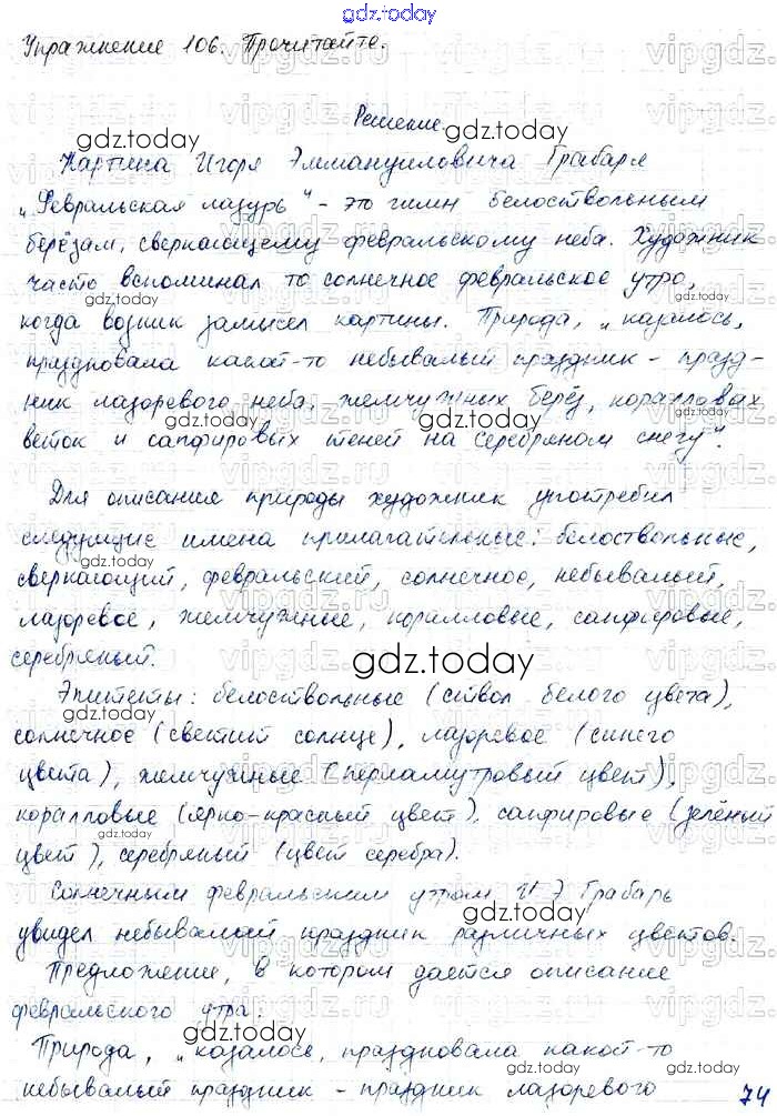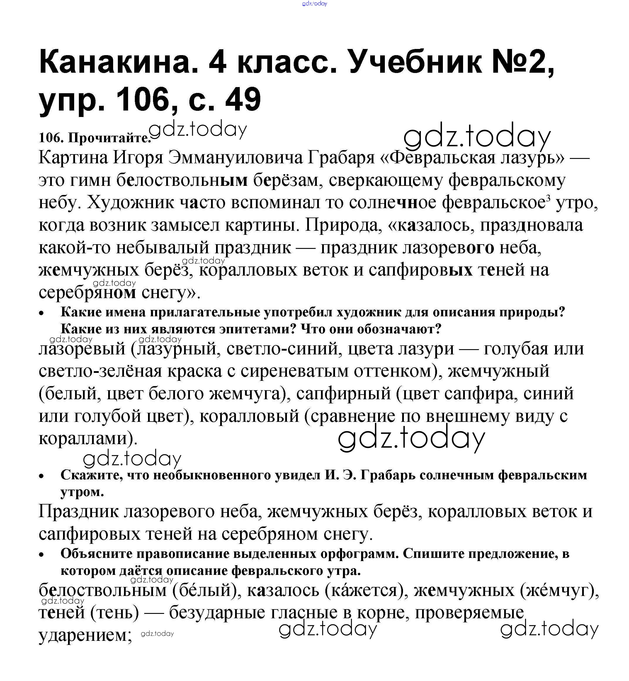 Ответы к Решение к части 2 106 Учебнику по Русскому языку для 4 класса Канакина, Горецкий Просвещение Школа России 2015