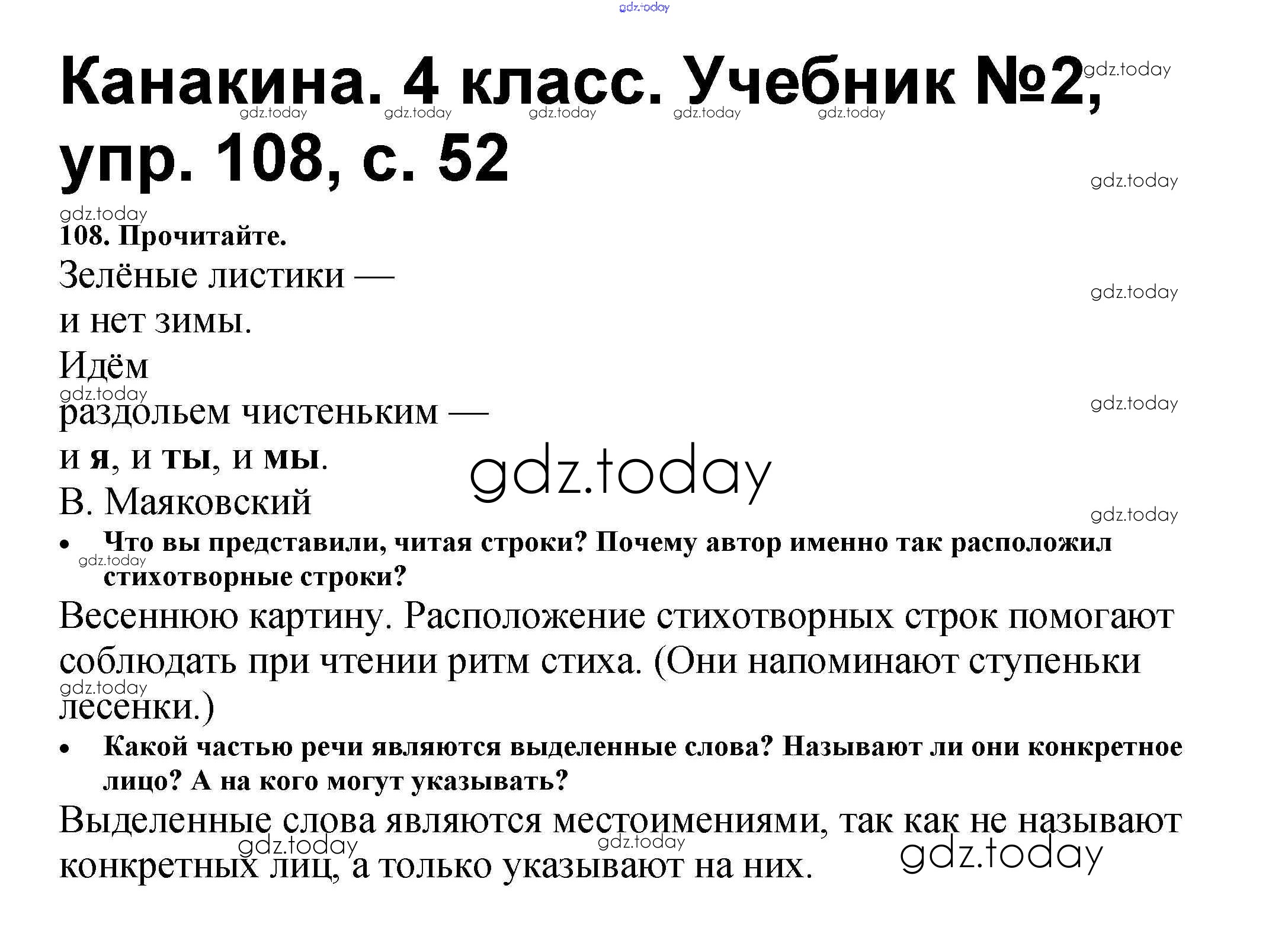 Ответы к Решение к части 2 108 Учебнику по Русскому языку для 4 класса Канакина, Горецкий Просвещение Школа России 2015