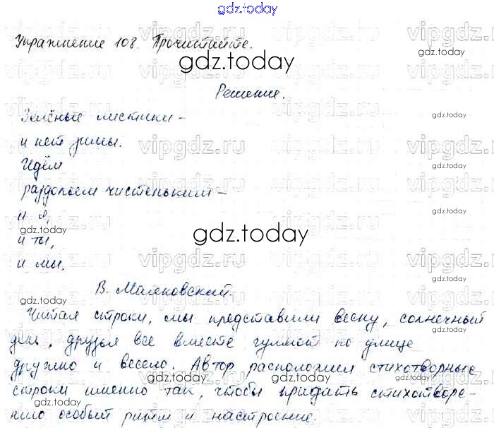На страницах сайта gdz.today вы найдете учебный и вспомогательный материал, направленный на улучшения знаний школьной программы. ГДЗ - онлайн мир знаний Решение к части 2 108 Учебнику по Русскому языку для 4 класса Канакина, Горецкий Просвещение Школа России 2015