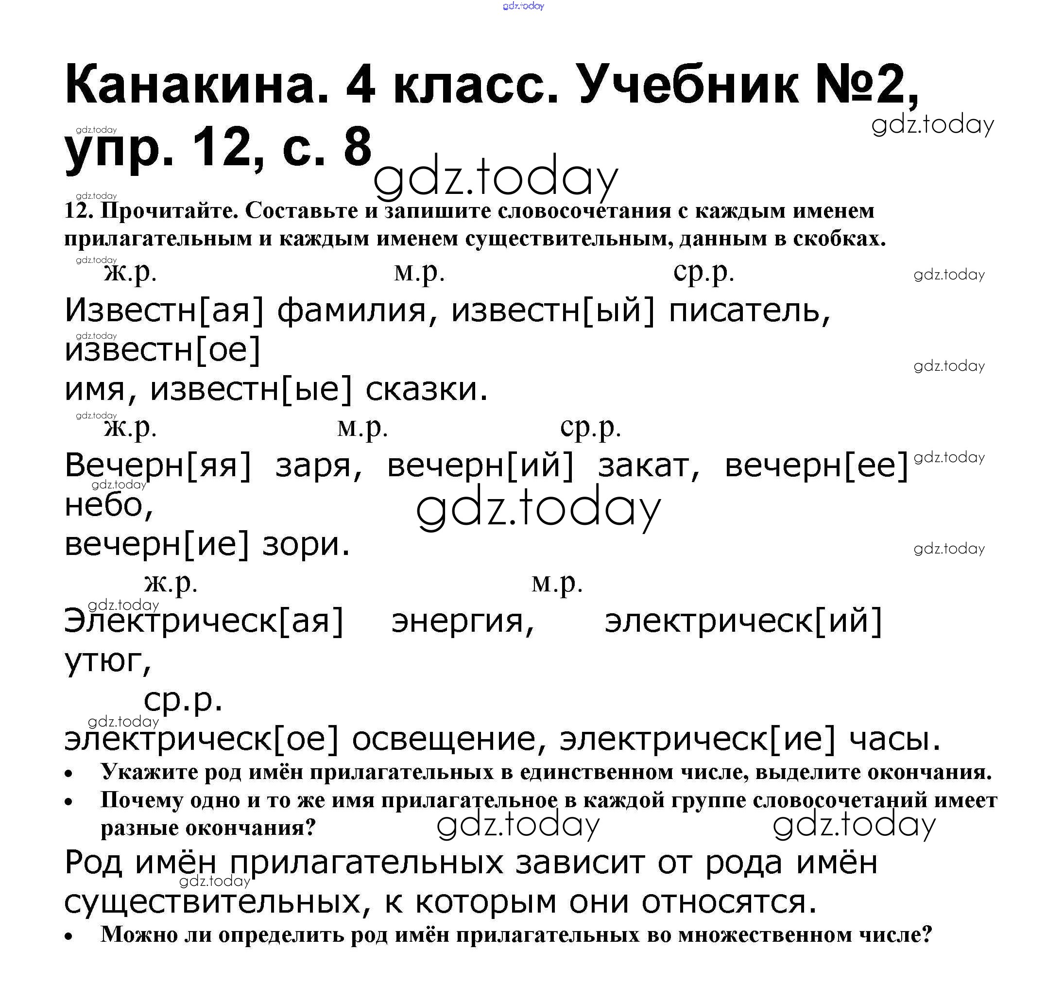 На страницах сайта gdz.today вы найдете учебный и вспомогательный материал, направленный на улучшения знаний школьной программы. ГДЗ - онлайн мир знаний Решение к части 2 12 Учебнику по Русскому языку для 4 класса Канакина, Горецкий Просвещение Школа России 2015