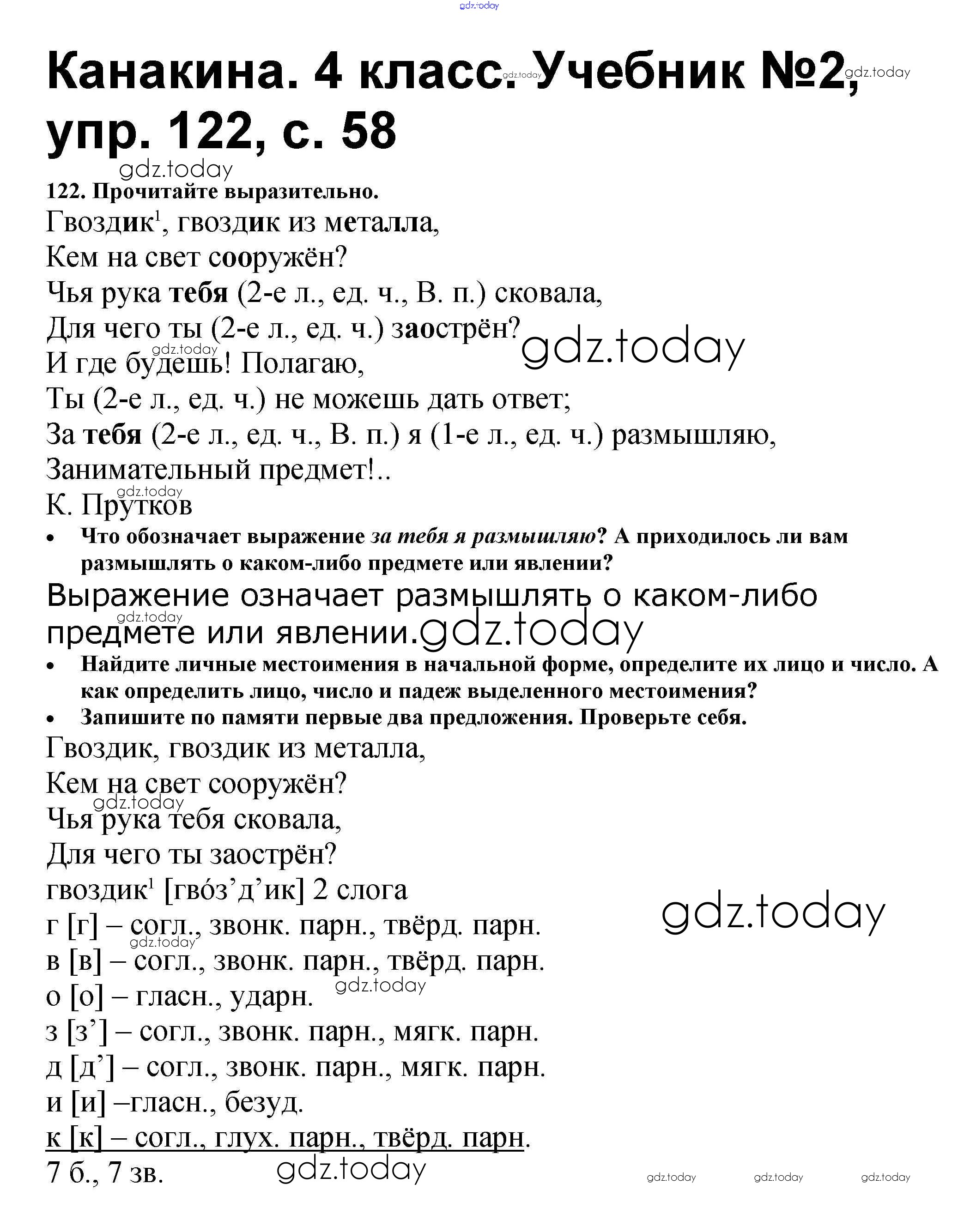 На страницах сайта gdz.today вы найдете учебный и вспомогательный материал, направленный на улучшения знаний школьной программы. ГДЗ - онлайн мир знаний Решение к части 2 122 Учебнику по Русскому языку для 4 класса Канакина, Горецкий Просвещение Школа России 2015