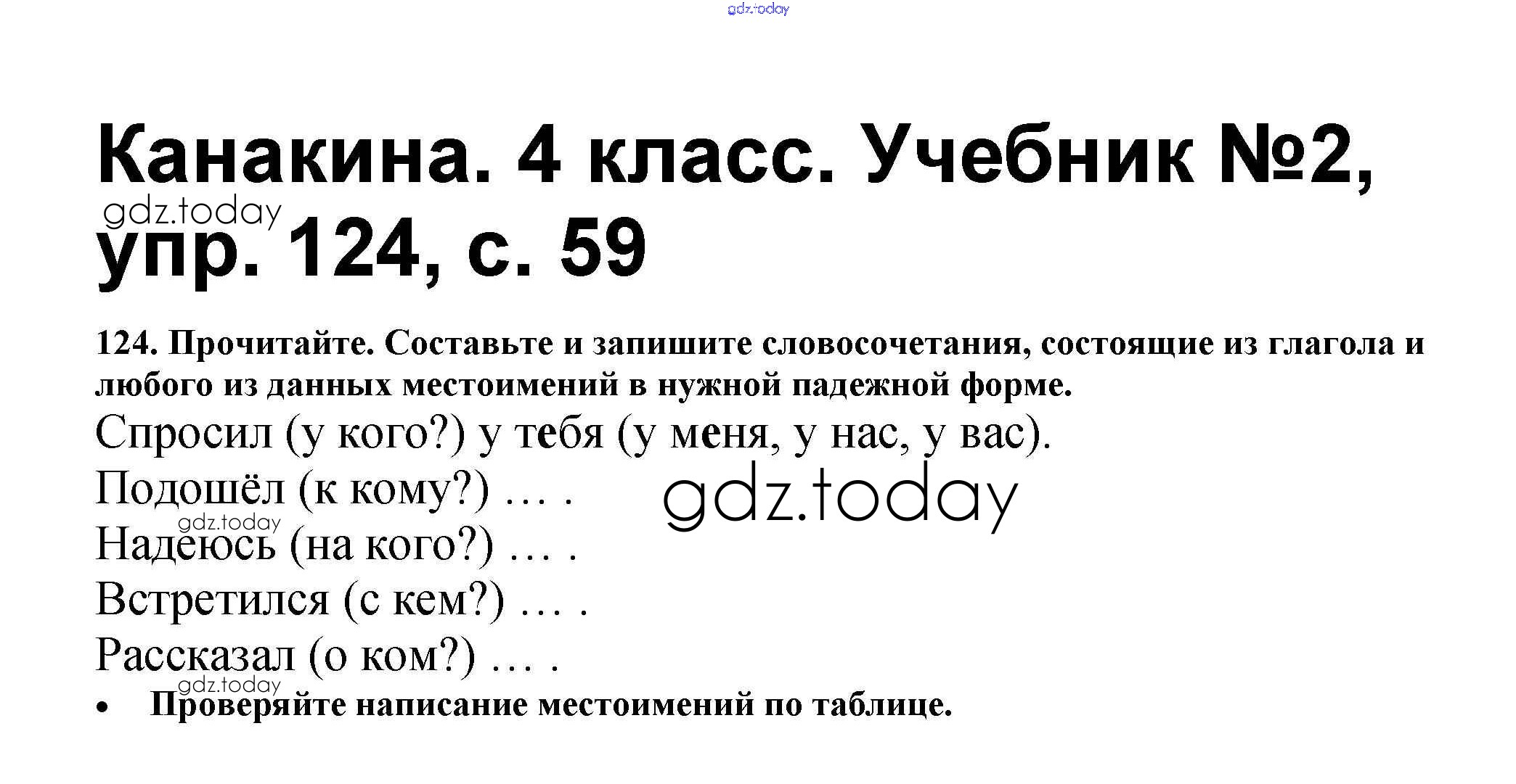 На страницах сайта gdz.today вы найдете учебный и вспомогательный материал, направленный на улучшения знаний школьной программы. ГДЗ - онлайн мир знаний Решение к части 2 124 Учебнику по Русскому языку для 4 класса Канакина, Горецкий Просвещение Школа России 2015