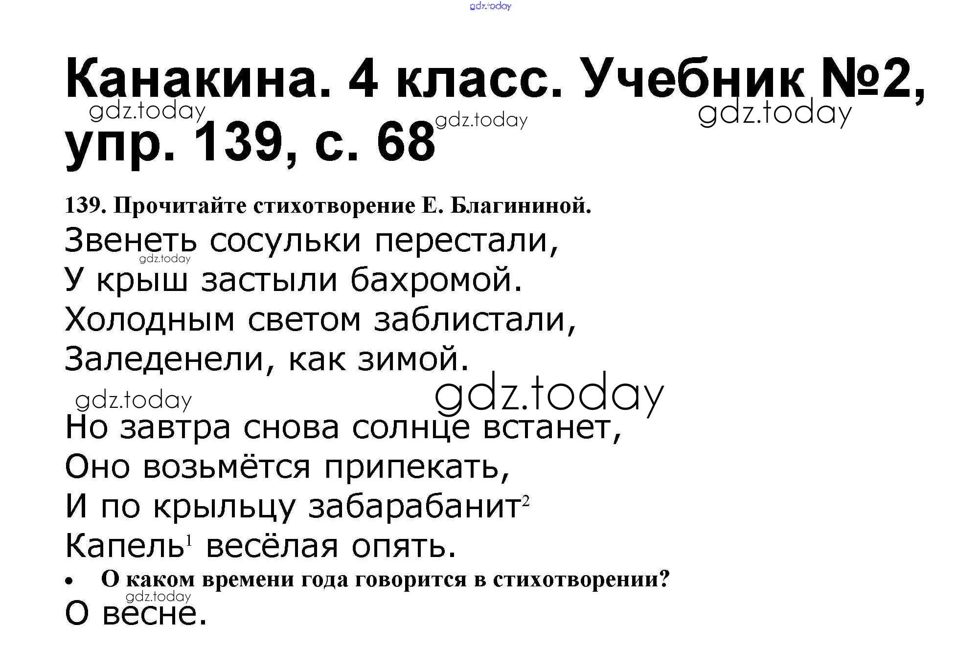 На страницах сайта gdz.today вы найдете учебный и вспомогательный материал, направленный на улучшения знаний школьной программы. ГДЗ - онлайн мир знаний Решение к части 2 139 Учебнику по Русскому языку для 4 класса Канакина, Горецкий Просвещение Школа России 2015