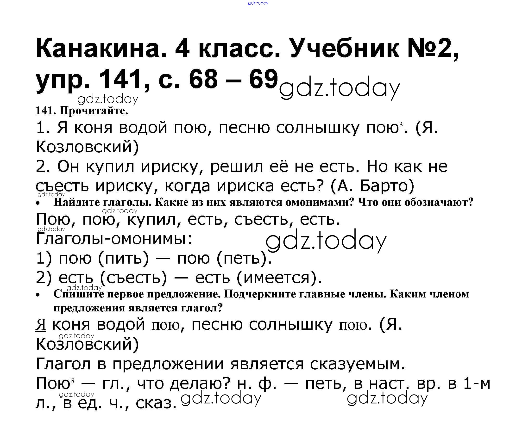 На страницах сайта gdz.today вы найдете учебный и вспомогательный материал, направленный на улучшения знаний школьной программы. ГДЗ - онлайн мир знаний Решение к части 2 141 Учебнику по Русскому языку для 4 класса Канакина, Горецкий Просвещение Школа России 2015