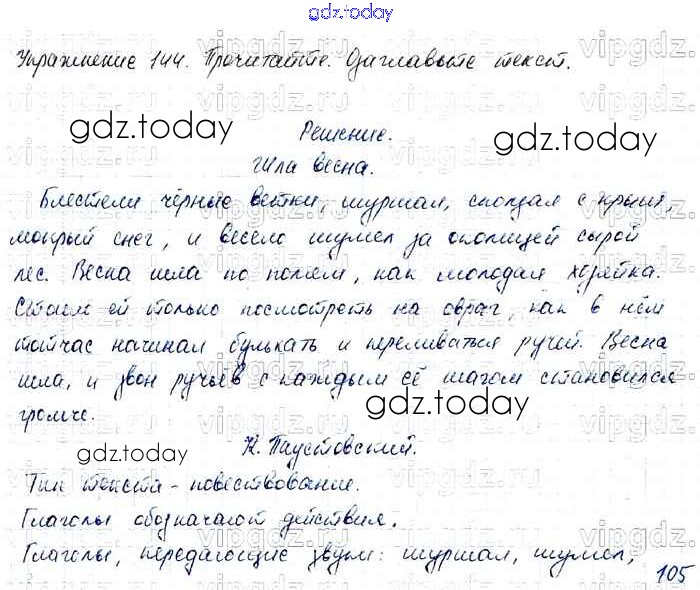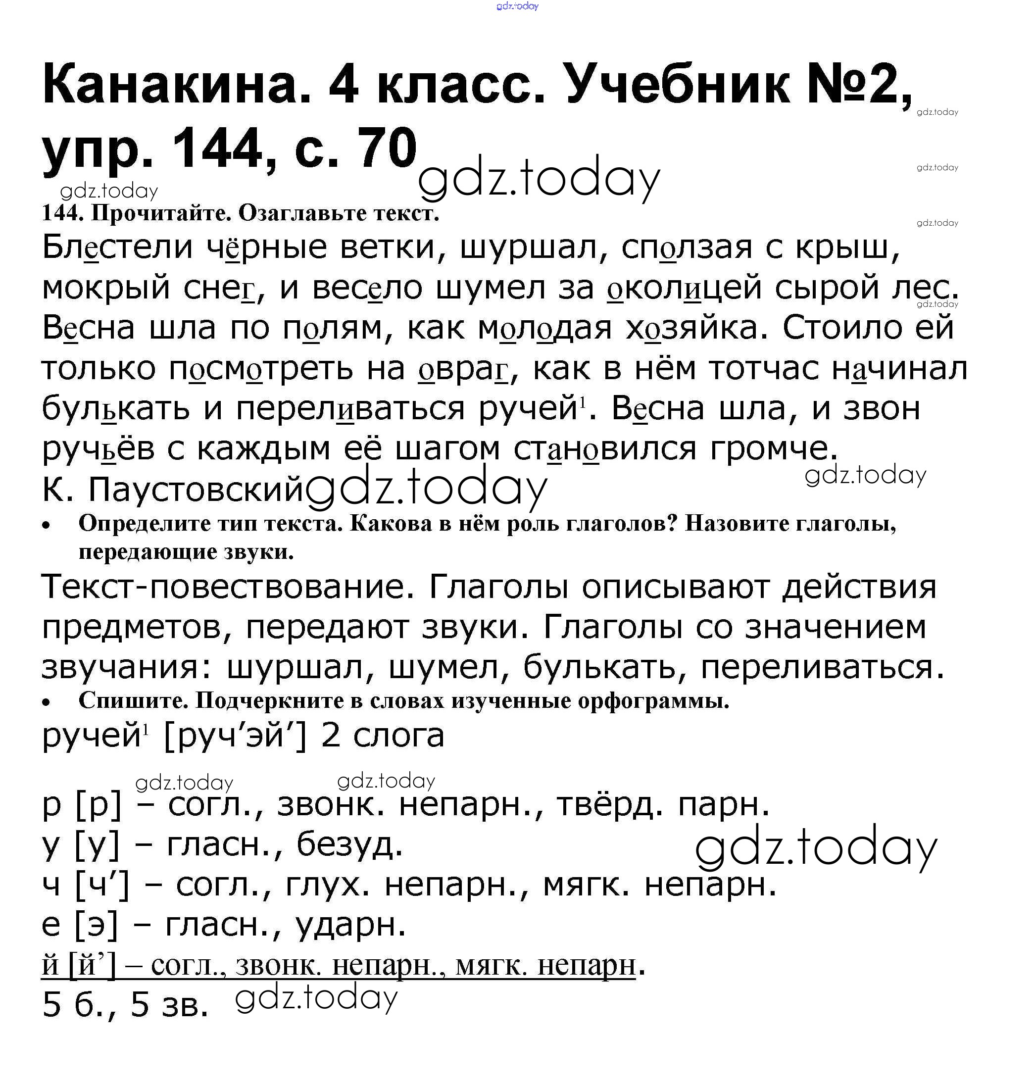 На страницах сайта gdz.today вы найдете учебный и вспомогательный материал, направленный на улучшения знаний школьной программы. ГДЗ - онлайн мир знаний Решение к части 2 144 Учебнику по Русскому языку для 4 класса Канакина, Горецкий Просвещение Школа России 2015