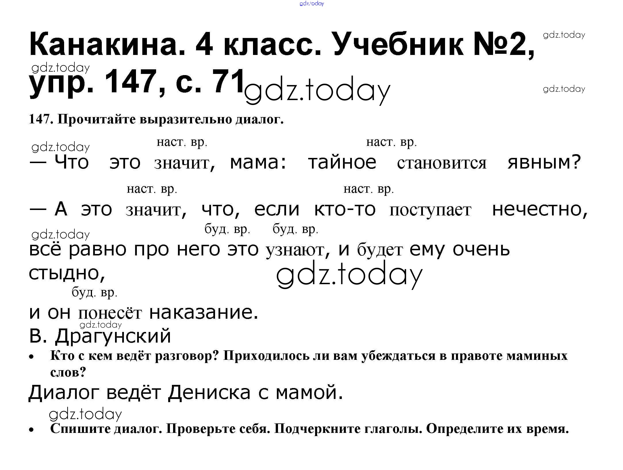 На страницах сайта gdz.today вы найдете учебный и вспомогательный материал, направленный на улучшения знаний школьной программы. ГДЗ - онлайн мир знаний Решение к части 2 147 Учебнику по Русскому языку для 4 класса Канакина, Горецкий Просвещение Школа России 2015