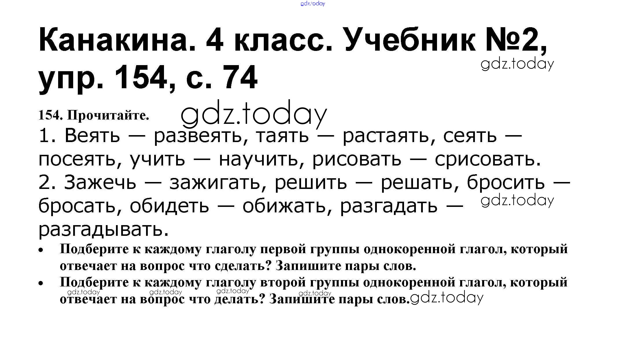 На страницах сайта gdz.today вы найдете учебный и вспомогательный материал, направленный на улучшения знаний школьной программы. ГДЗ - онлайн мир знаний Решение к части 2 154 Учебнику по Русскому языку для 4 класса Канакина, Горецкий Просвещение Школа России 2015