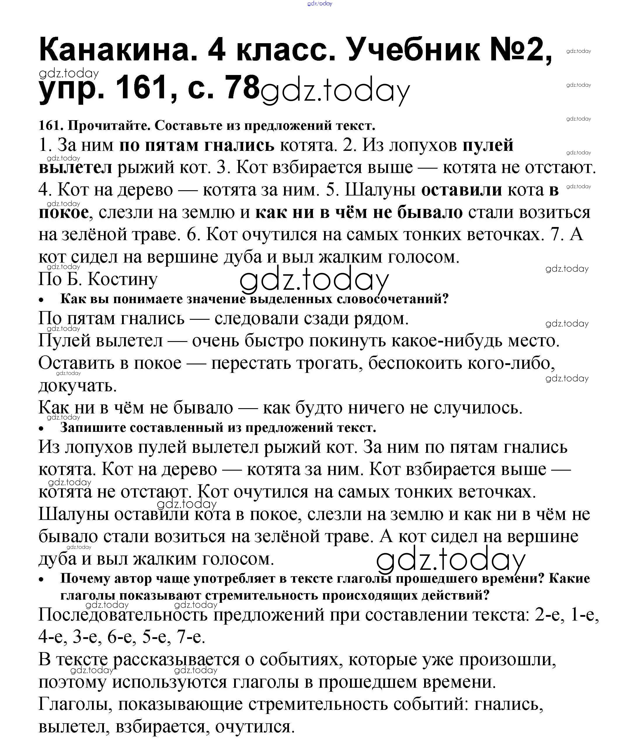 На страницах сайта gdz.today вы найдете учебный и вспомогательный материал, направленный на улучшения знаний школьной программы. ГДЗ - онлайн мир знаний Решение к части 2 161 Учебнику по Русскому языку для 4 класса Канакина, Горецкий Просвещение Школа России 2015