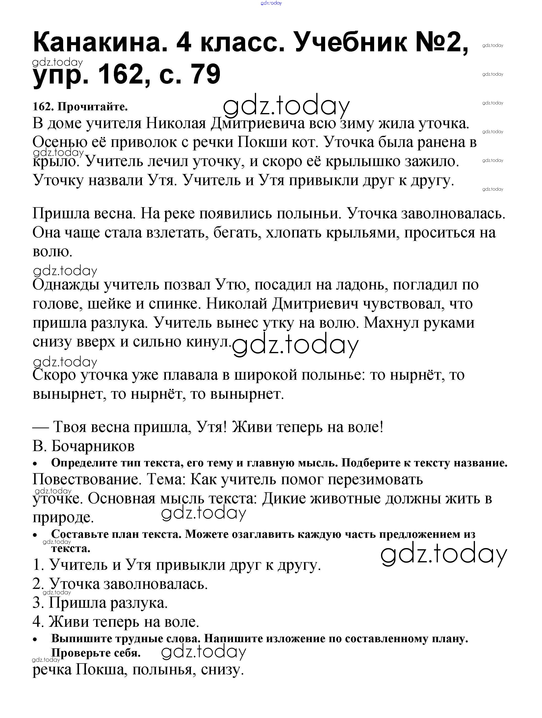 Ответы к Решение к части 2 162 Учебнику по Русскому языку для 4 класса Канакина, Горецкий Просвещение Школа России 2015