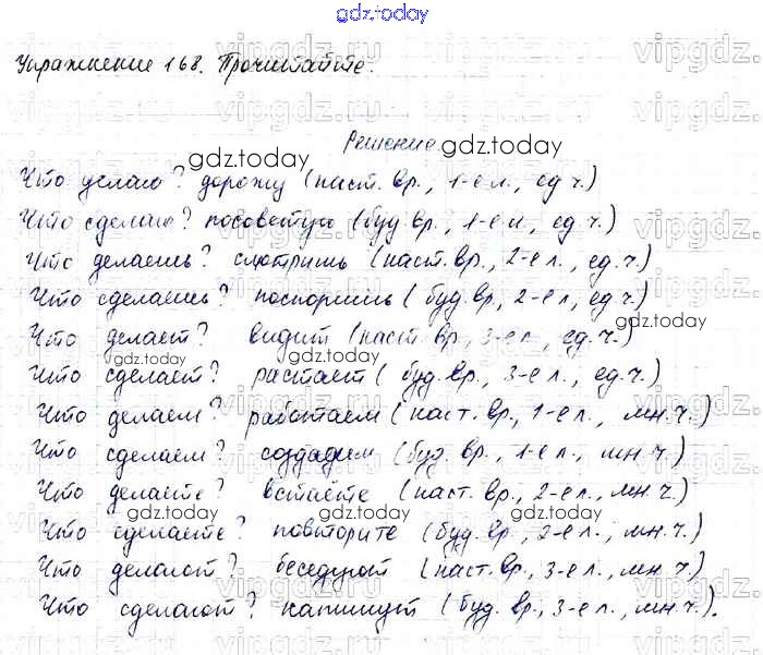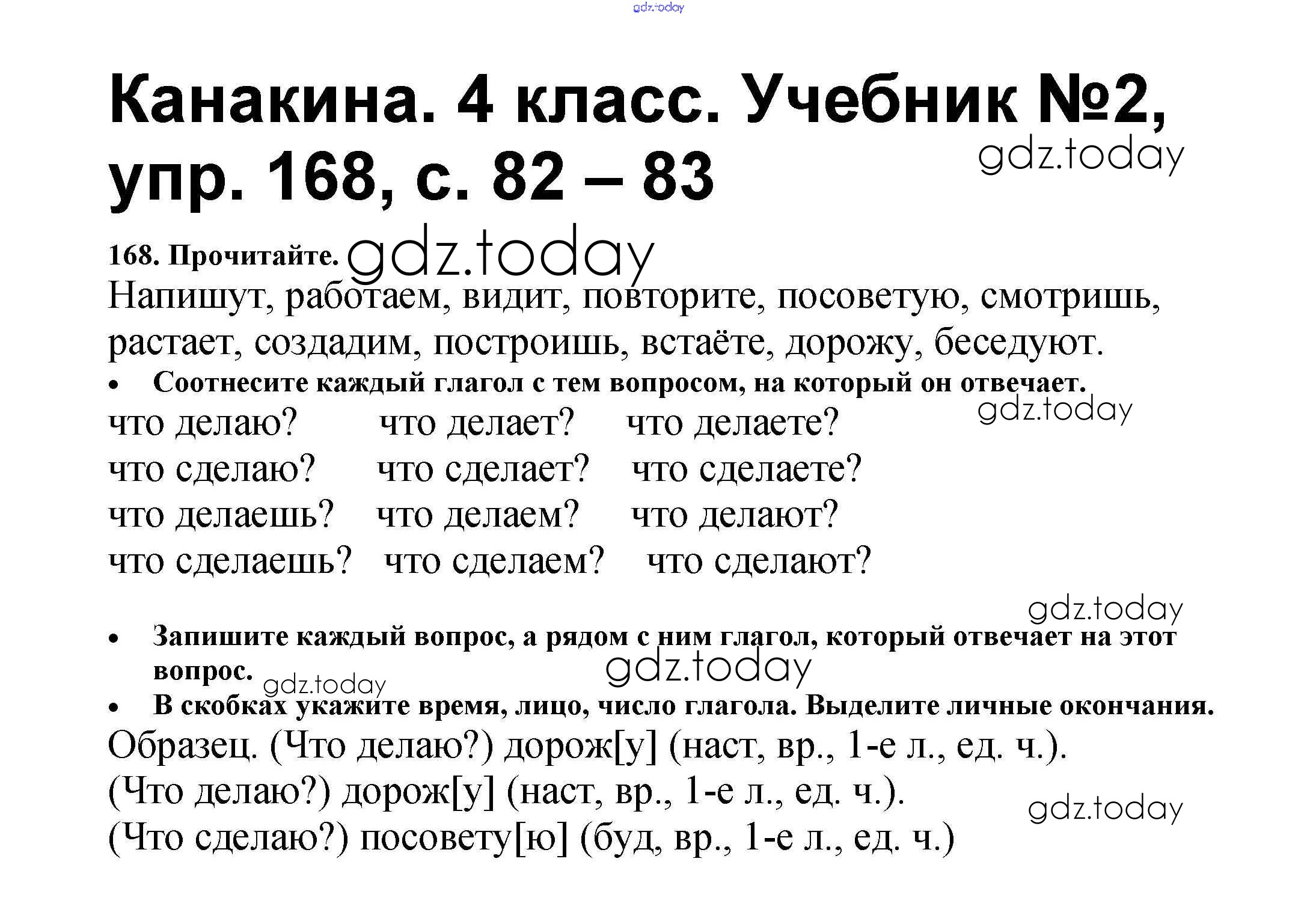 На страницах сайта gdz.today вы найдете учебный и вспомогательный материал, направленный на улучшения знаний школьной программы. ГДЗ - онлайн мир знаний Решение к части 2 168 Учебнику по Русскому языку для 4 класса Канакина, Горецкий Просвещение Школа России 2015
