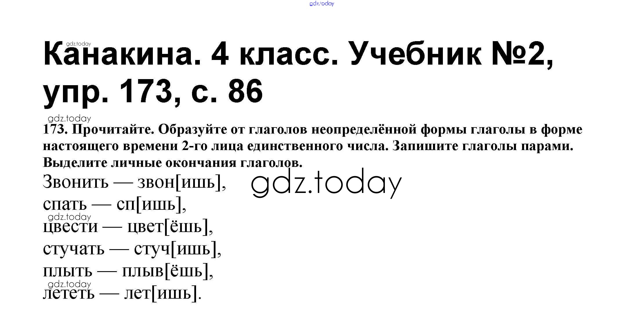 На страницах сайта gdz.today вы найдете учебный и вспомогательный материал, направленный на улучшения знаний школьной программы. ГДЗ - онлайн мир знаний Решение к части 2 173 Учебнику по Русскому языку для 4 класса Канакина, Горецкий Просвещение Школа России 2015