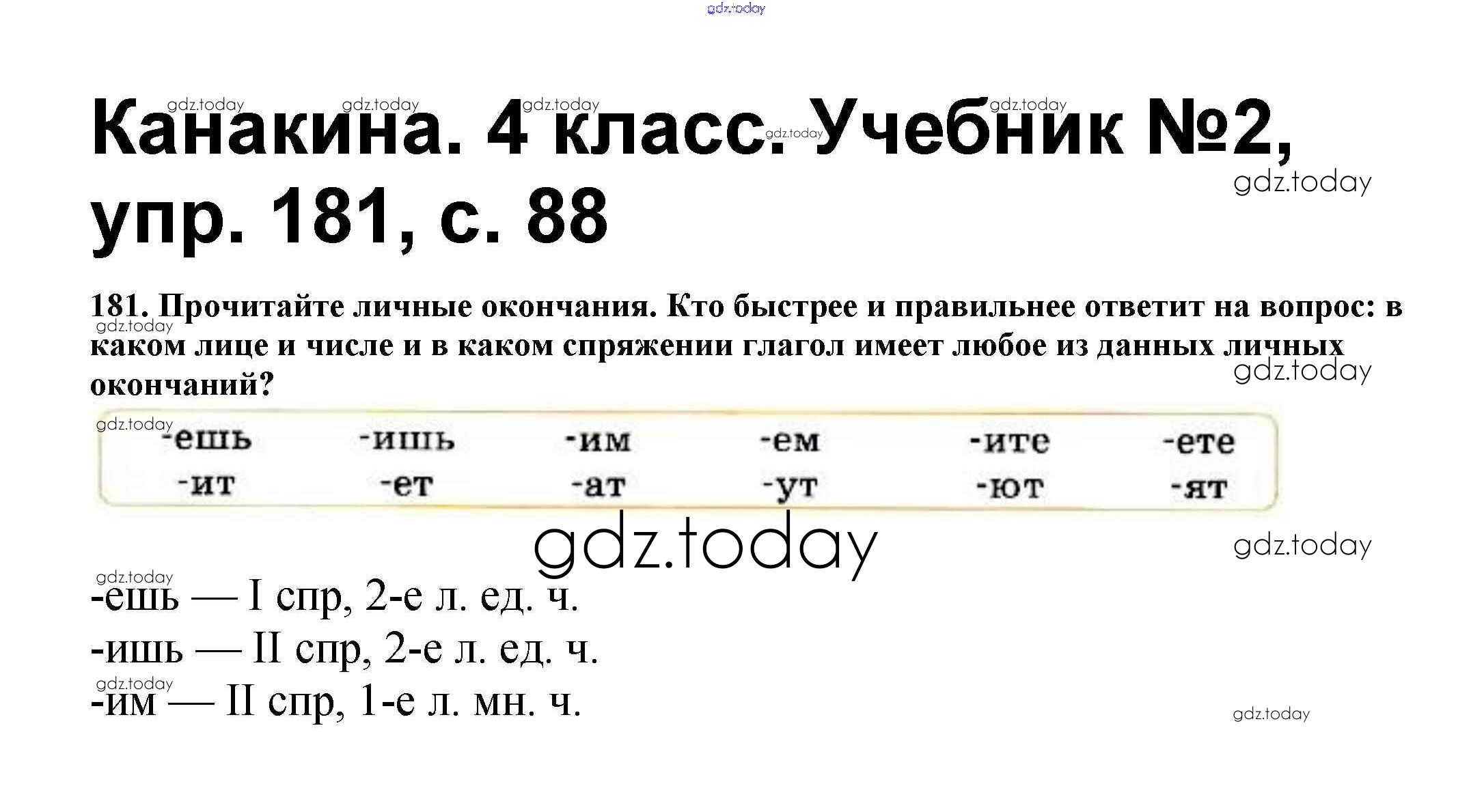 На страницах сайта gdz.today вы найдете учебный и вспомогательный материал, направленный на улучшения знаний школьной программы. ГДЗ - онлайн мир знаний Решение к части 2 181 Учебнику по Русскому языку для 4 класса Канакина, Горецкий Просвещение Школа России 2015