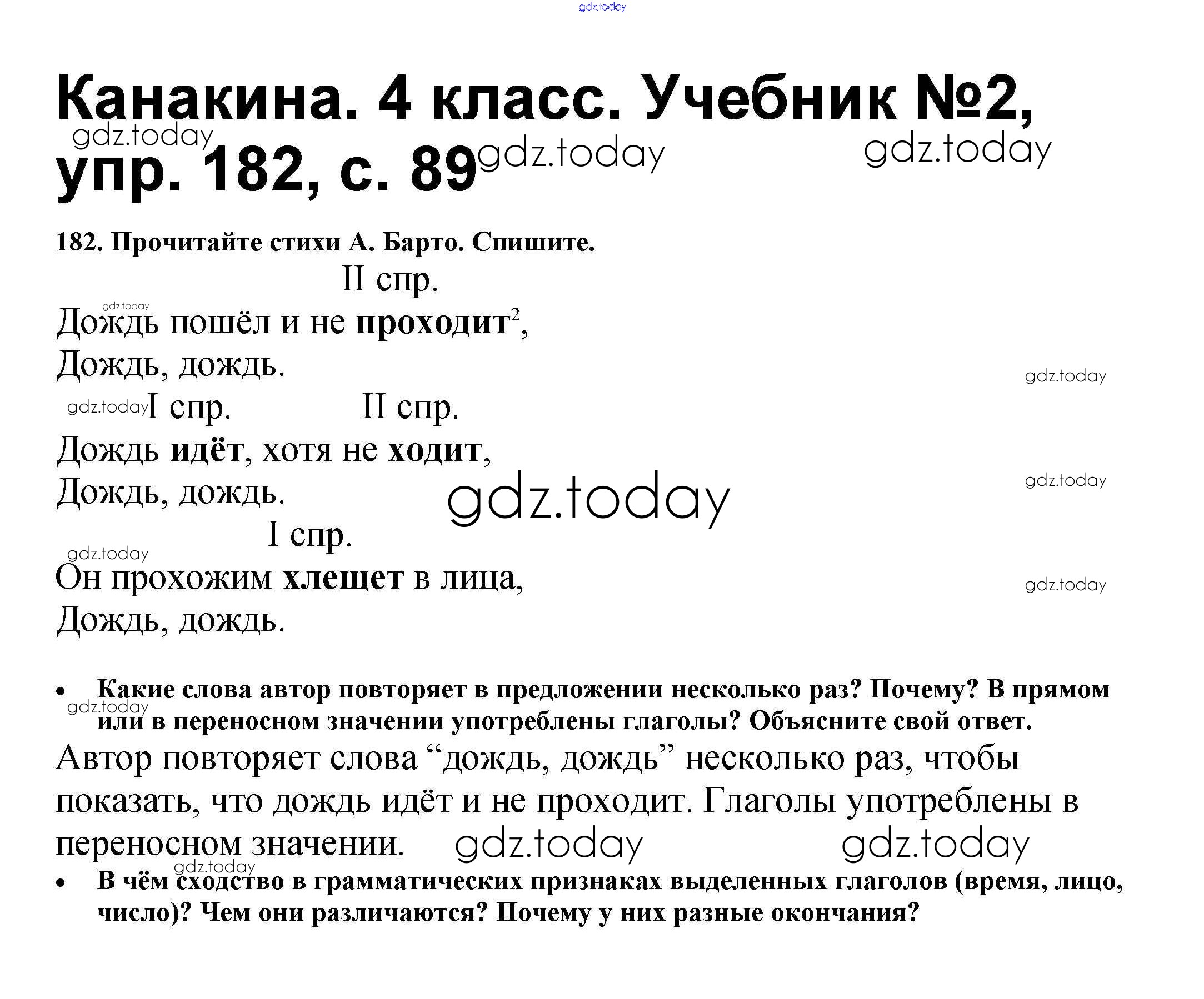 На страницах сайта gdz.today вы найдете учебный и вспомогательный материал, направленный на улучшения знаний школьной программы. ГДЗ - онлайн мир знаний Решение к части 2 182 Учебнику по Русскому языку для 4 класса Канакина, Горецкий Просвещение Школа России 2015
