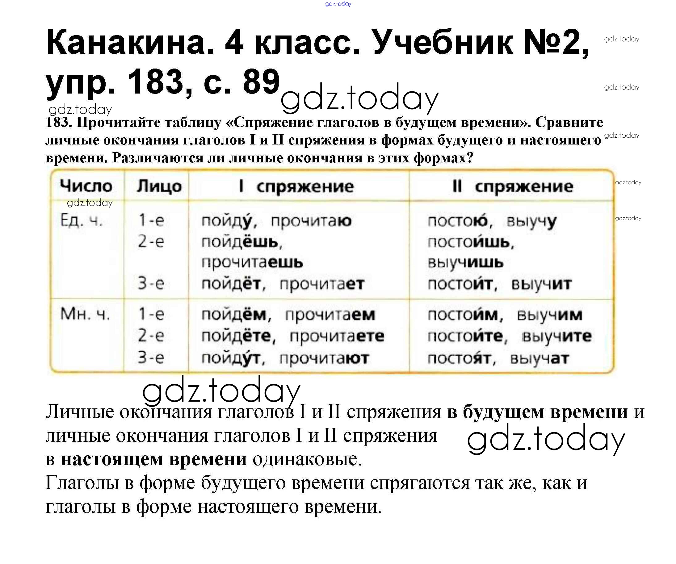 На страницах сайта gdz.today вы найдете учебный и вспомогательный материал, направленный на улучшения знаний школьной программы. ГДЗ - онлайн мир знаний Решение к части 2 183 Учебнику по Русскому языку для 4 класса Канакина, Горецкий Просвещение Школа России 2015