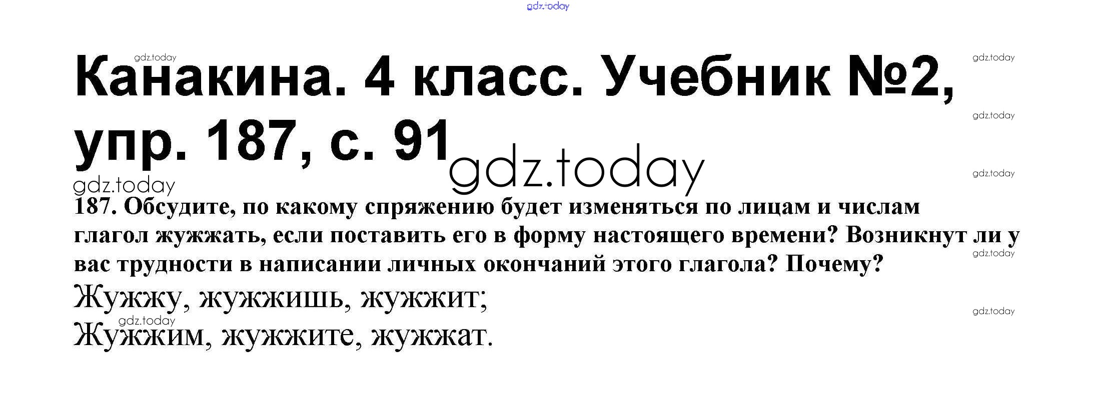 На страницах сайта gdz.today вы найдете учебный и вспомогательный материал, направленный на улучшения знаний школьной программы. ГДЗ - онлайн мир знаний Решение к части 2 187 Учебнику по Русскому языку для 4 класса Канакина, Горецкий Просвещение Школа России 2015
