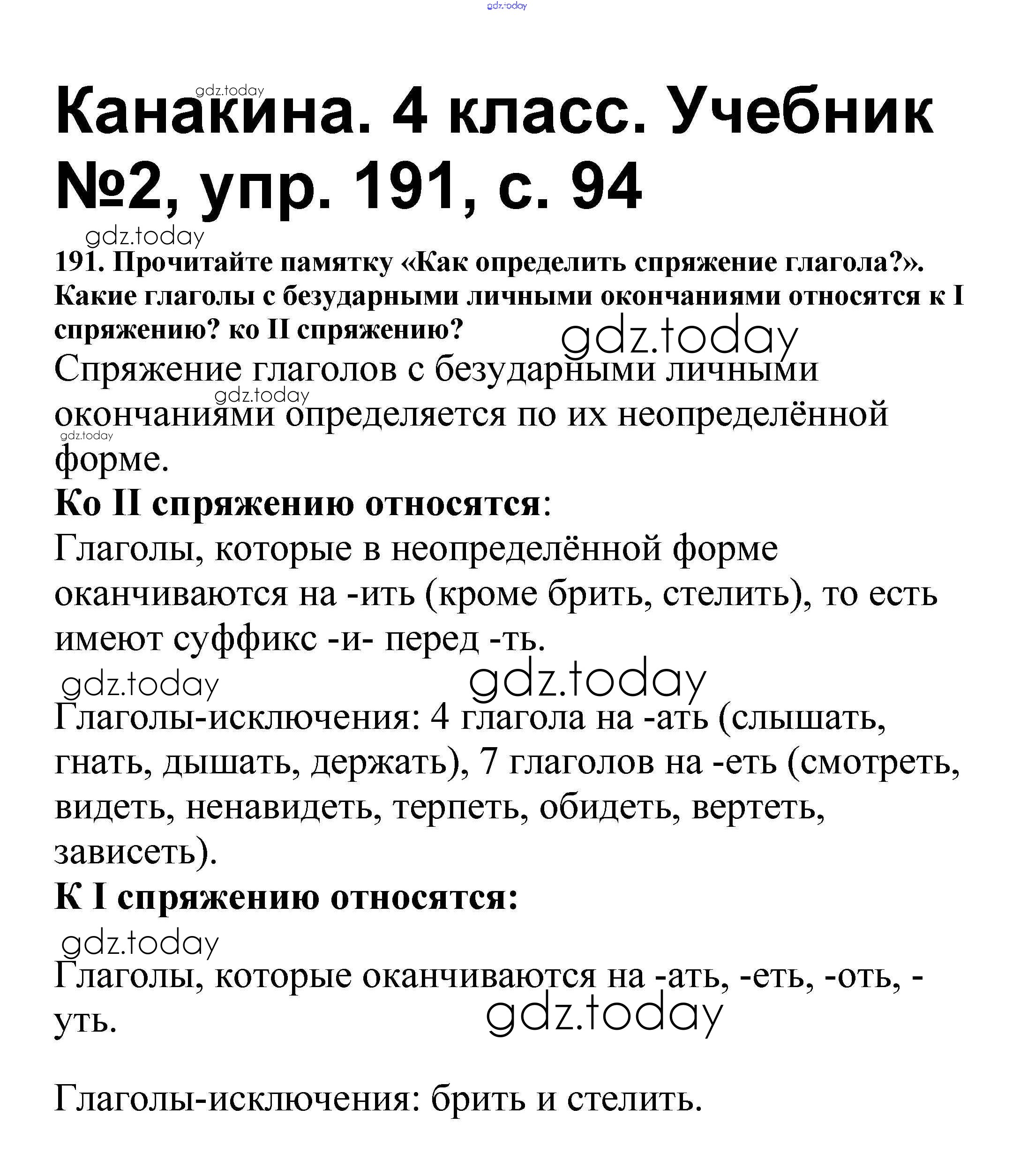 Ответы к Решение к части 2 191 Учебнику по Русскому языку для 4 класса Канакина, Горецкий Просвещение Школа России 2015