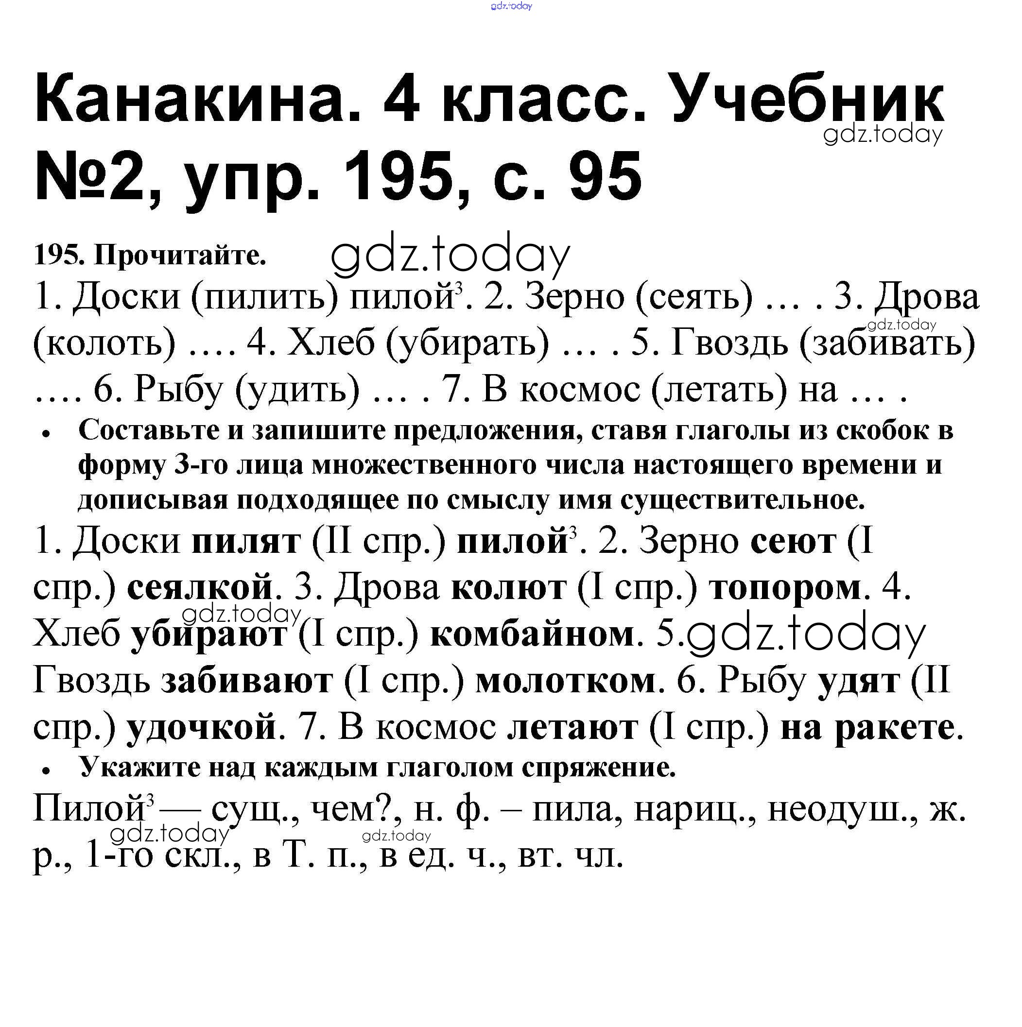 На страницах сайта gdz.today вы найдете учебный и вспомогательный материал, направленный на улучшения знаний школьной программы. ГДЗ - онлайн мир знаний Решение к части 2 195 Учебнику по Русскому языку для 4 класса Канакина, Горецкий Просвещение Школа России 2015