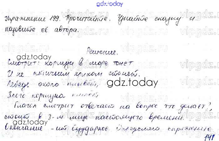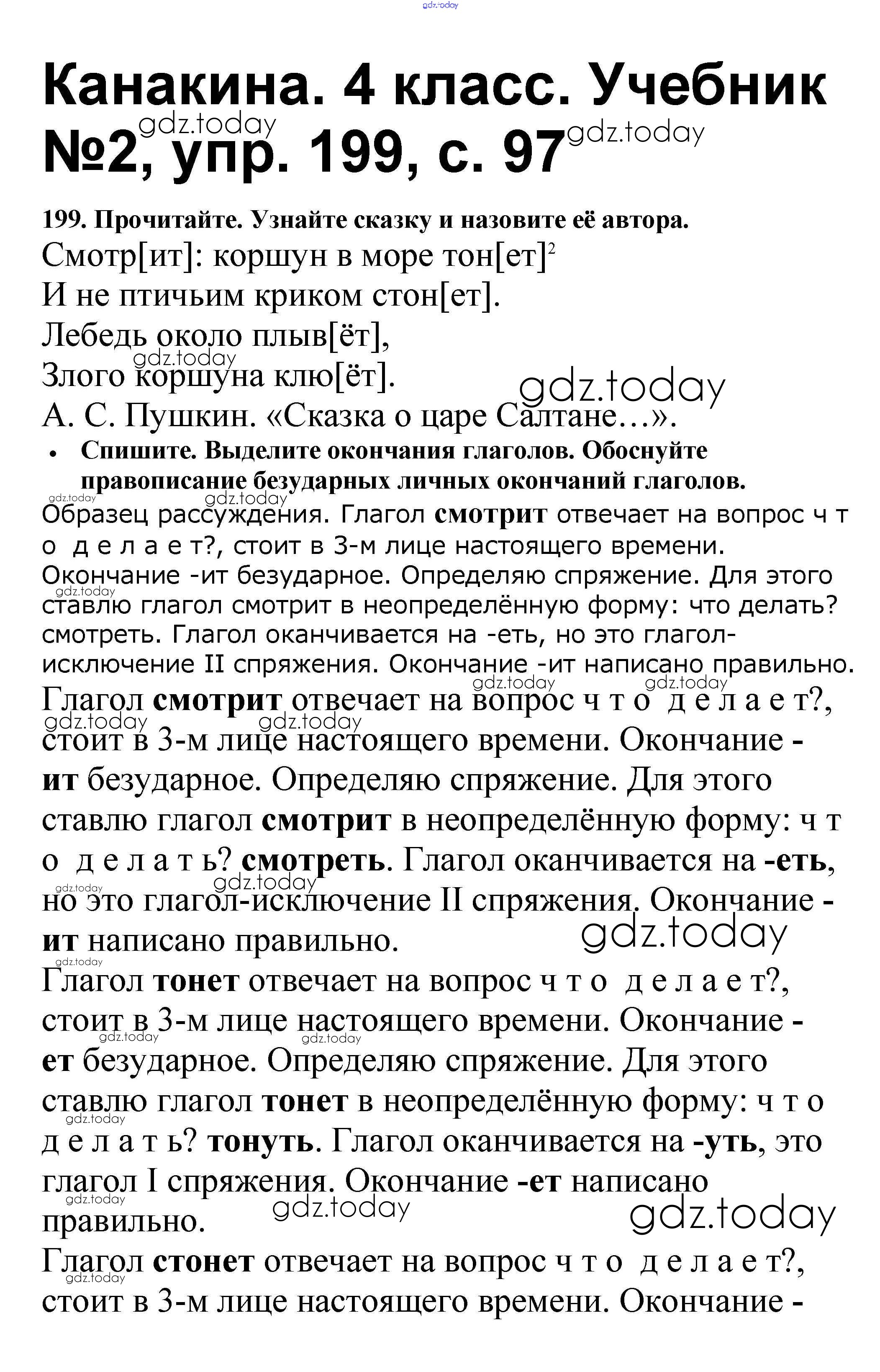 На страницах сайта gdz.today вы найдете учебный и вспомогательный материал, направленный на улучшения знаний школьной программы. ГДЗ - онлайн мир знаний Решение к части 2 199 Учебнику по Русскому языку для 4 класса Канакина, Горецкий Просвещение Школа России 2015