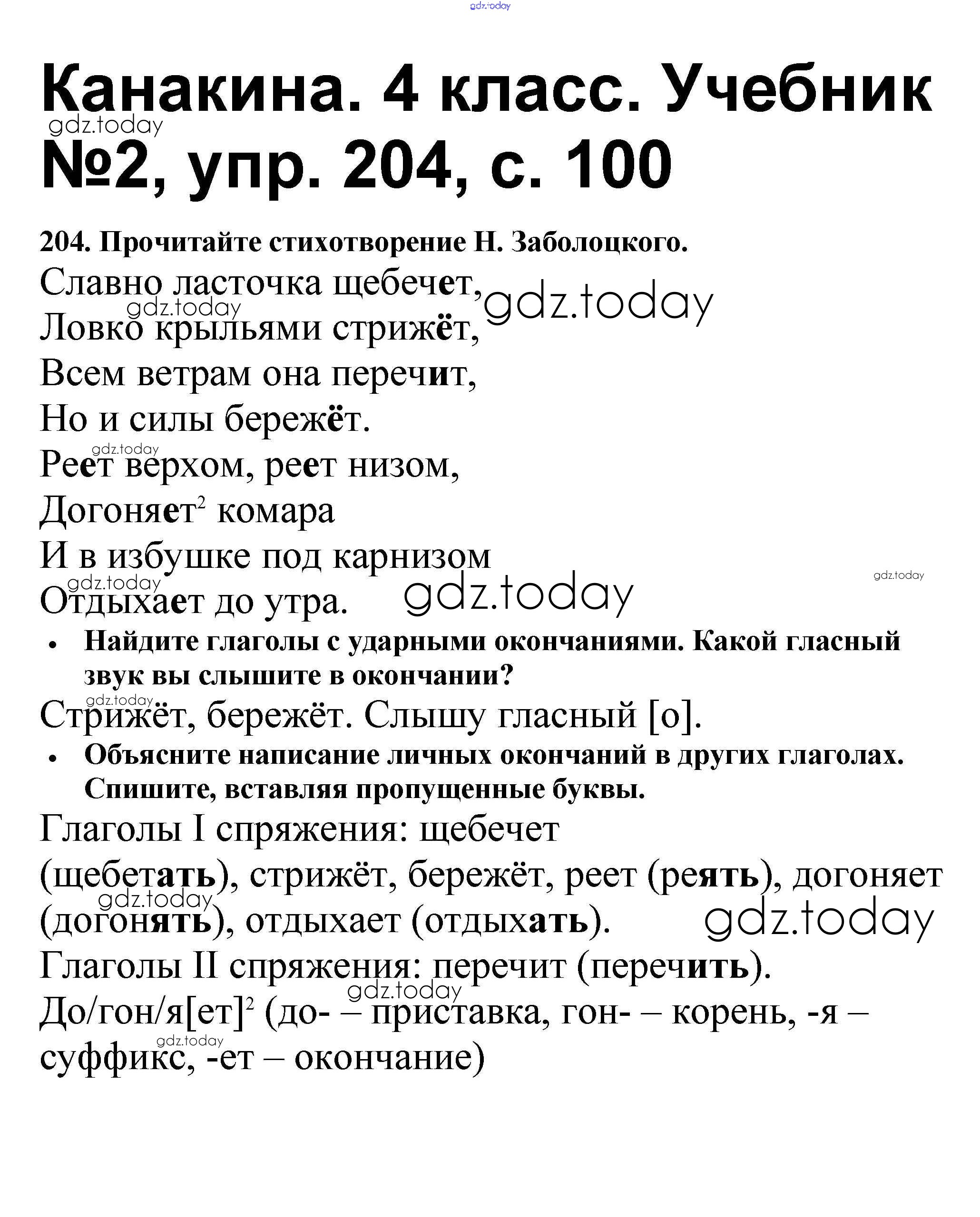 На страницах сайта gdz.today вы найдете учебный и вспомогательный материал, направленный на улучшения знаний школьной программы. ГДЗ - онлайн мир знаний Решение к части 2 204 Учебнику по Русскому языку для 4 класса Канакина, Горецкий Просвещение Школа России 2015